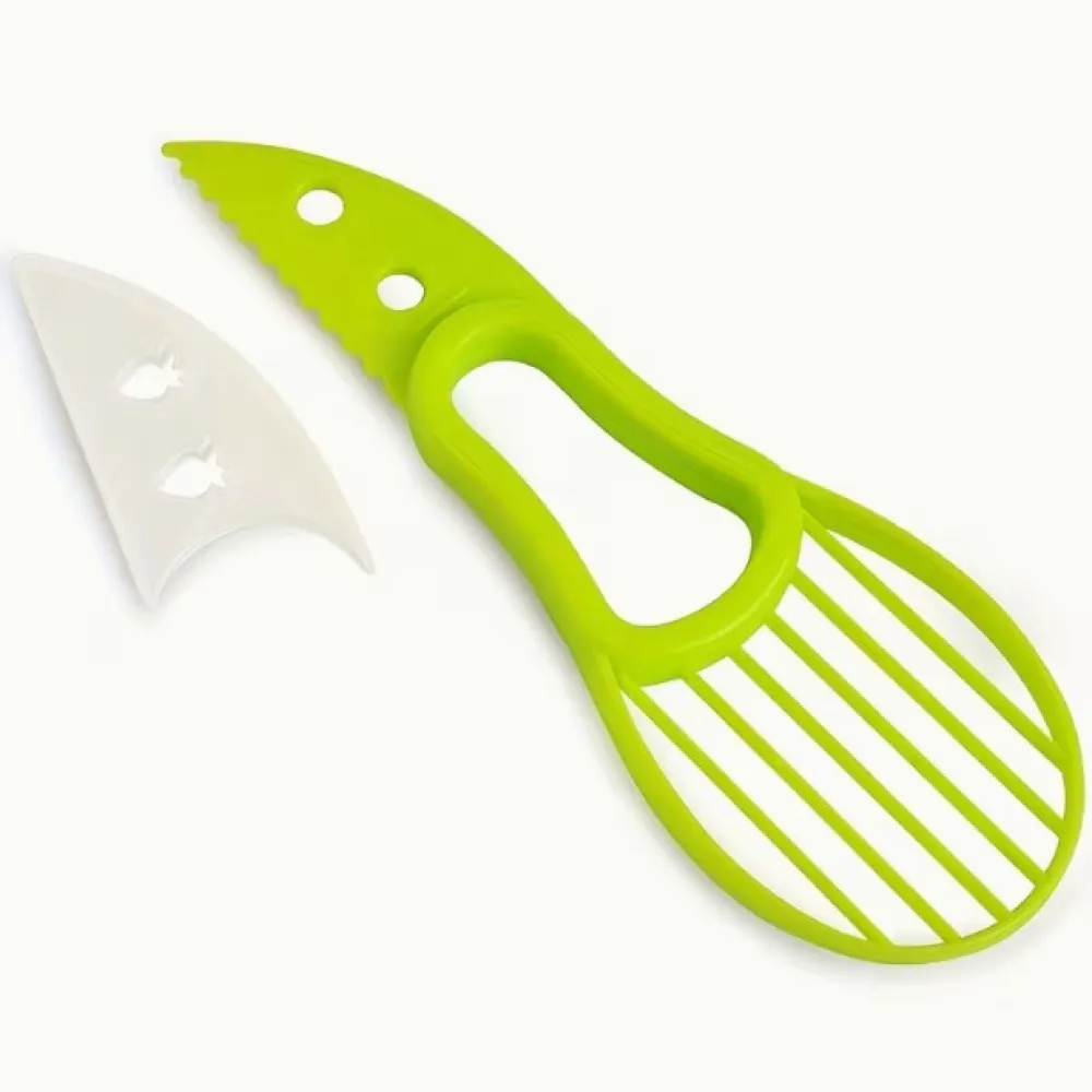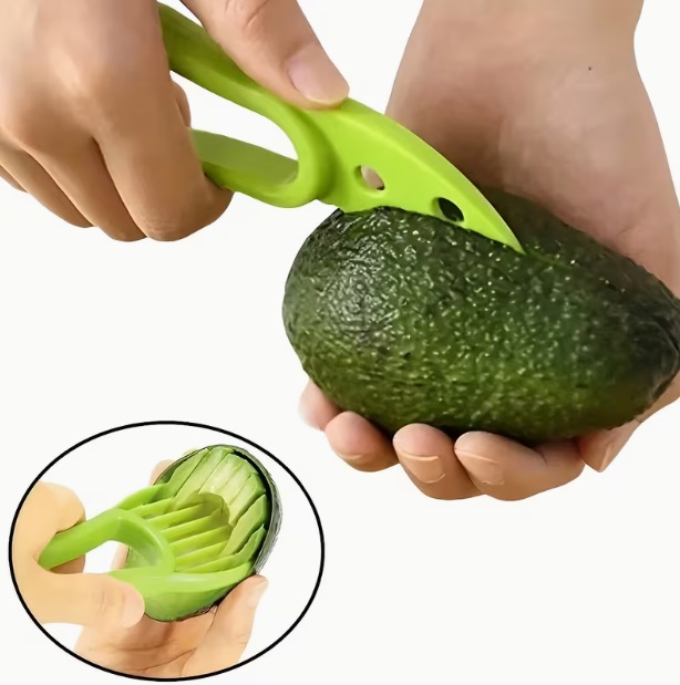 Praktický krájač na avokádo je ideálnym pomocníkom na jednoduchú a rýchlu prípravu tohto obľúbeného ovocia. Umožňuje bezpečné prekrojenie, odstránenie kôstky aj vytvorenie rovnomerných plátkov počas niekoľkých sekúnd. Vďaka premyslenej konštrukcii nie je potrebné používať klasické ostré nože ani zložité pohyby. Zelené prevedenie z odolného plastu zapadne do každej modernej kuchyne.
