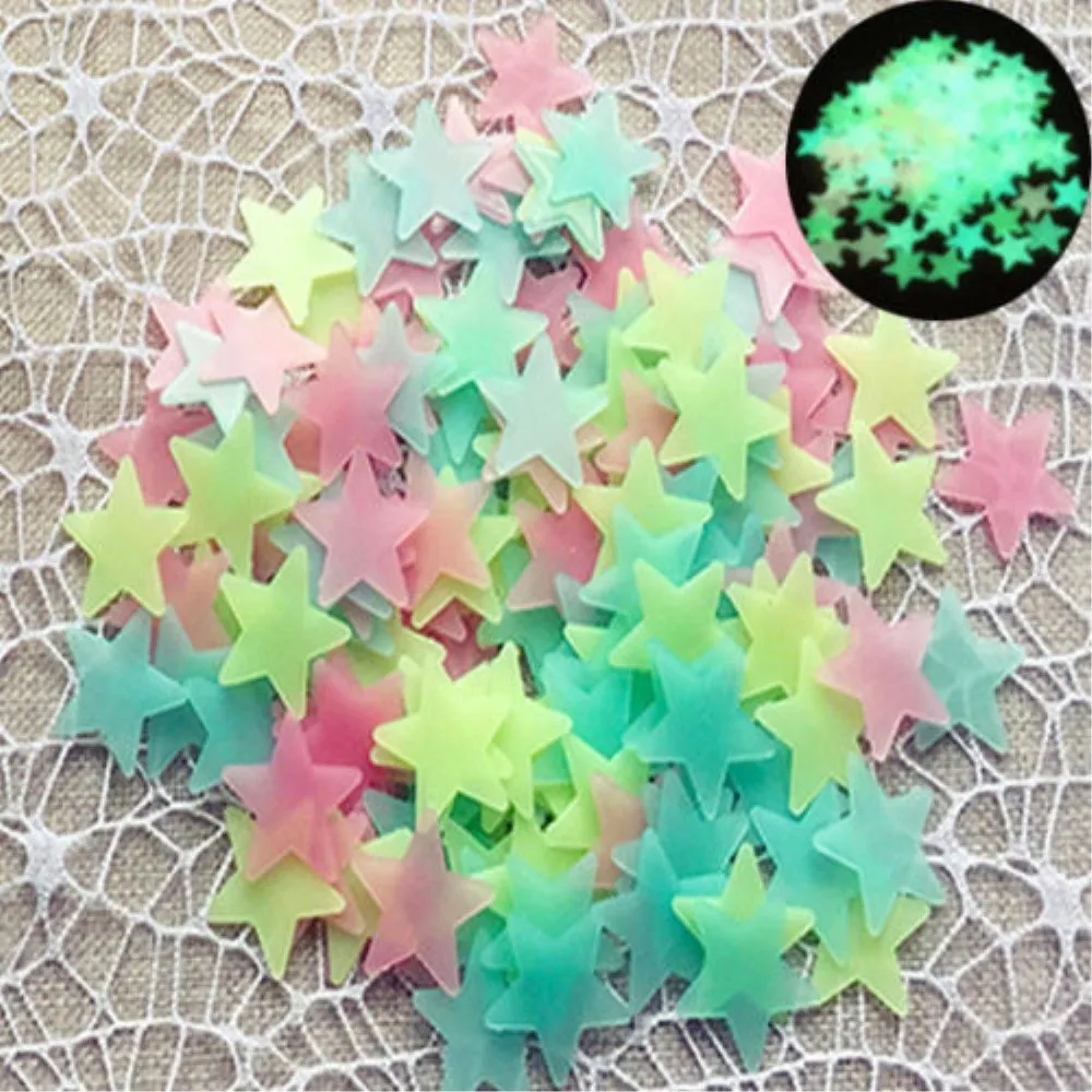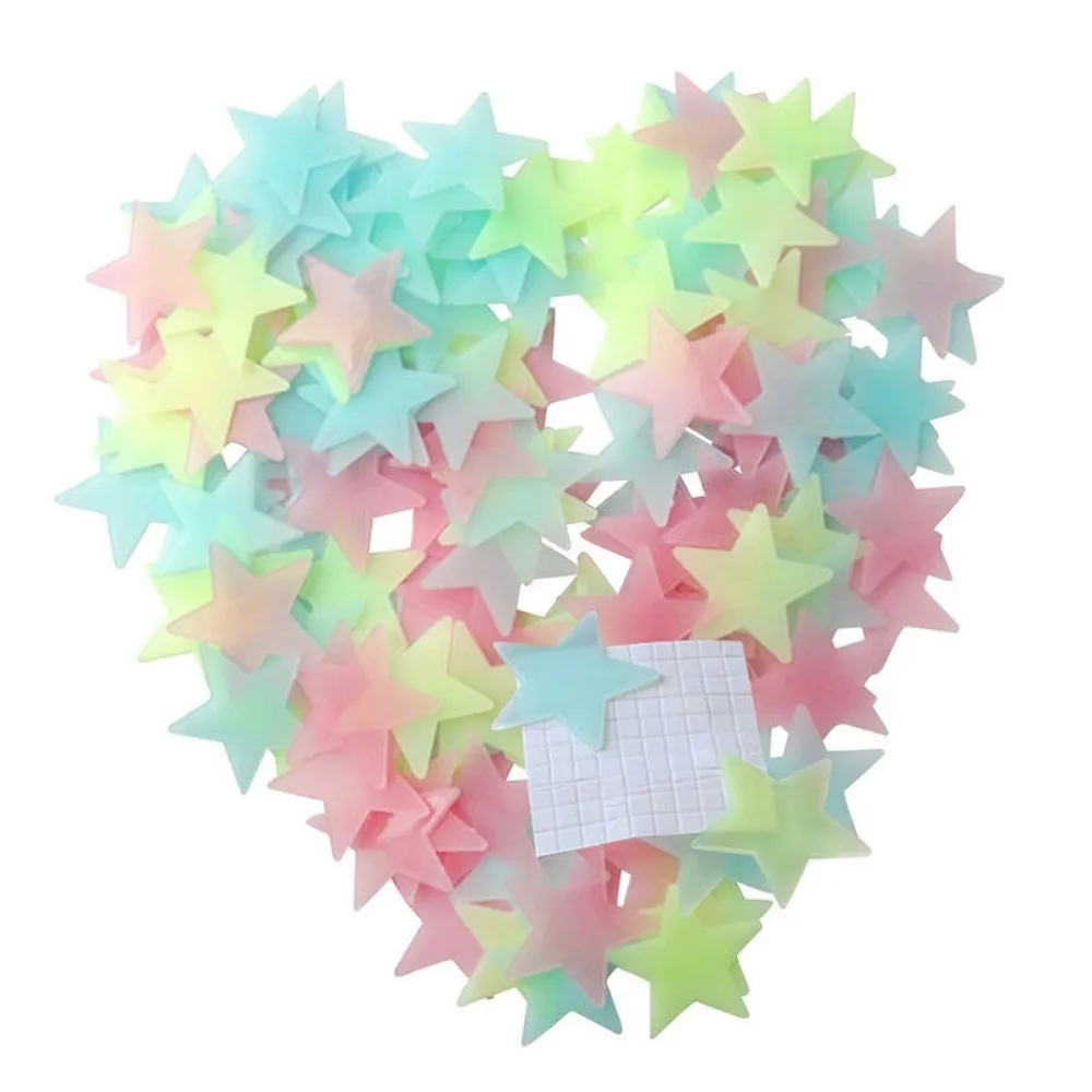 100 kusov 3D nalepovacích fluorescenčných hviezdičiek na stenu