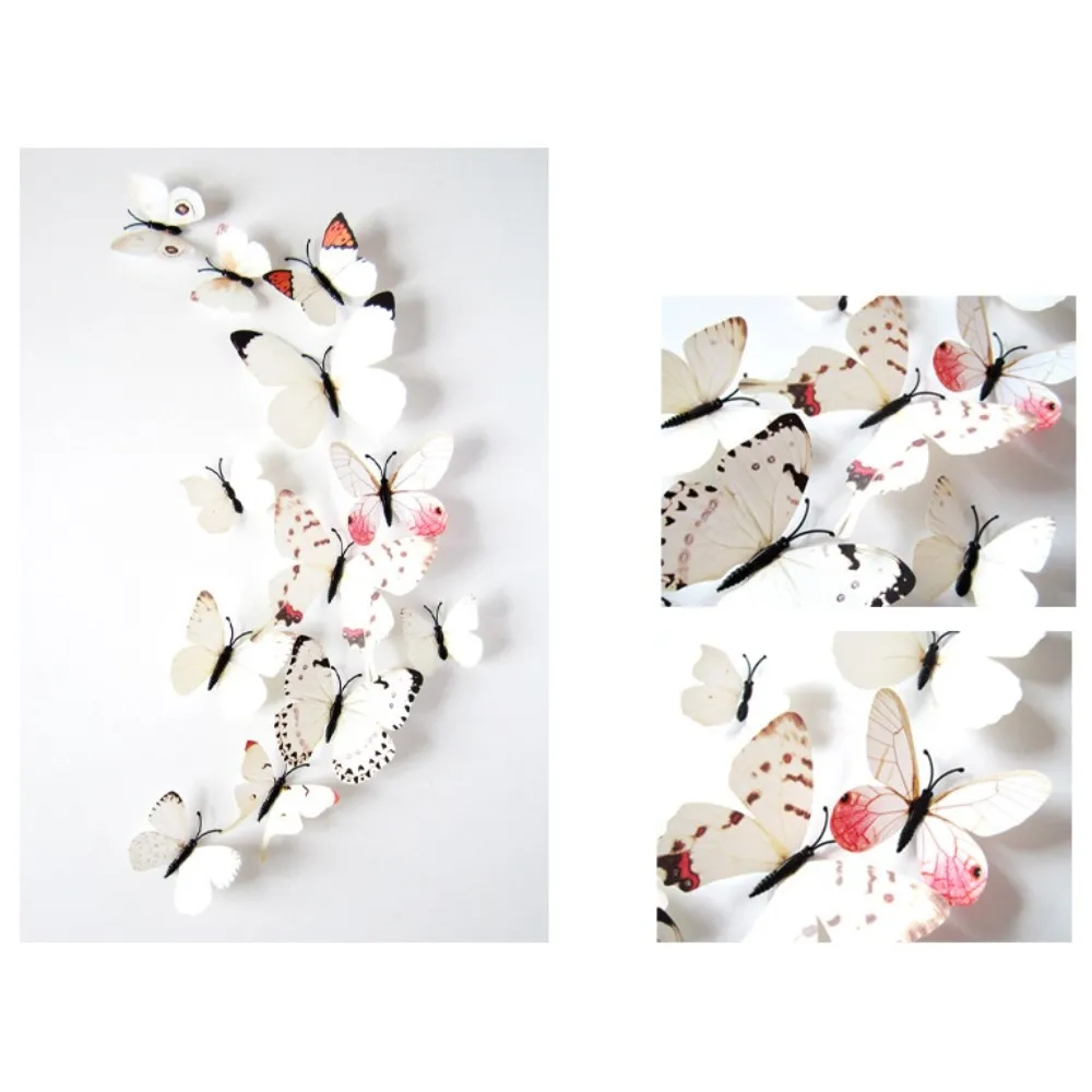 12 kusov 3D samolepiek bielych motýľov na stenu a nábytok