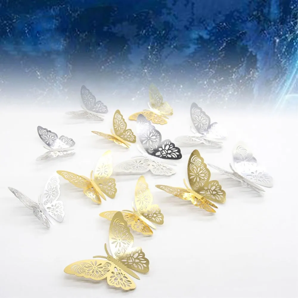 12 kusov 3D samolepiek zlatých motýľov na stenu a nábytok
