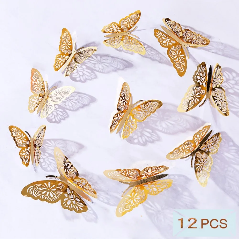 3D samolepky motýľov na stenu a nábytok (12 ks) - zlatí motýle