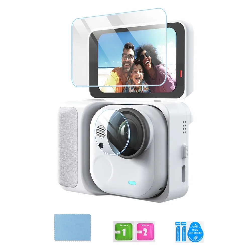 Inštalácia je rýchla a jednoduchá bez vzniku bubliniek. Ochranné prvky sú navrhnuté presne pre model Insta360 GO Ultra a poskytujú dlhodobú ochranu bez zhoršenia kvality záznamu.