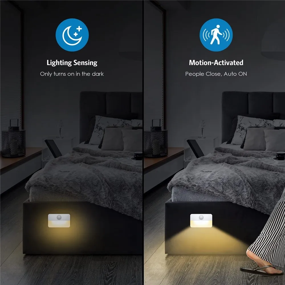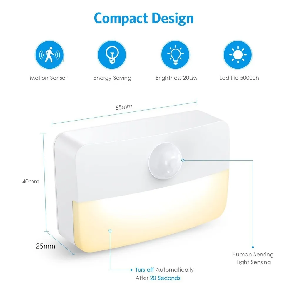 Praktické LED nočné svetlo s pohybovým senzorom zabezpečí pohodlné a automatické osvetlenie v momente, keď ho potrebujete. Vďaka integrovanému pohybovému senzoru sa svetlo aktivuje pri zaznamenaní pohybu a po určitej dobe sa opäť samo vypne. Teplá biela farba svetla vytvára príjemnú atmosféru vhodnú do spálne, chodby alebo detskej izby. Kompaktné prevedenie z odolného ABS plastu umožňuje nenápadné umiestnenie v rôznych častiach domácnosti.