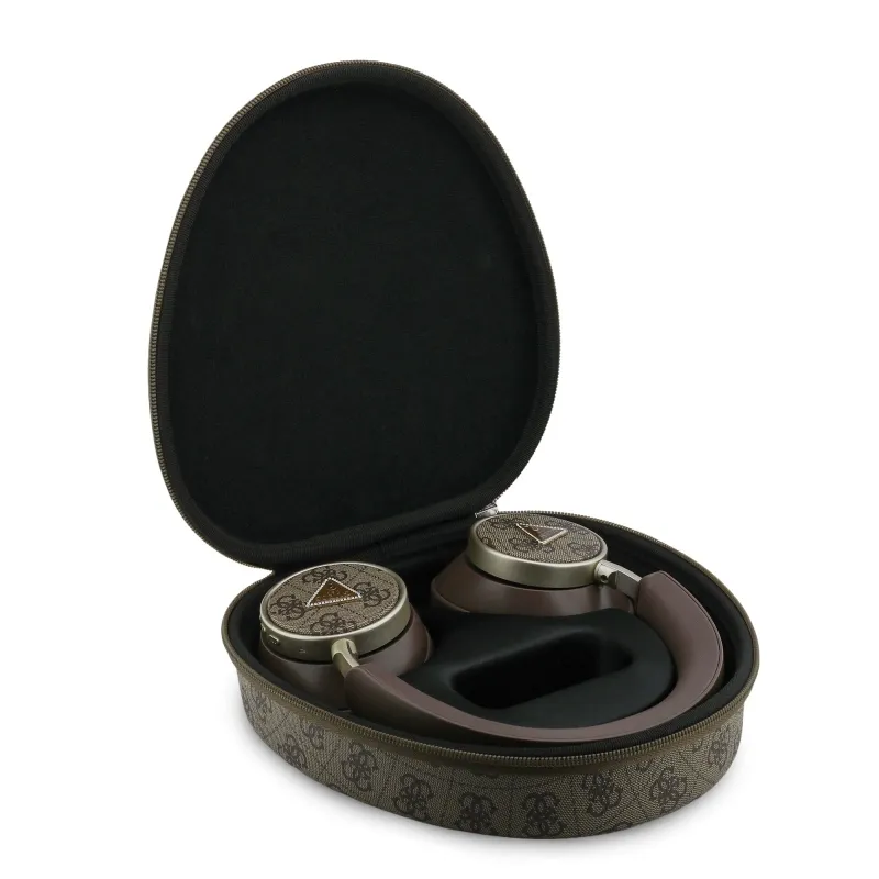 Bezdrôtové slúchadlá Guess PU 4G Triangle Logo ENC Brown