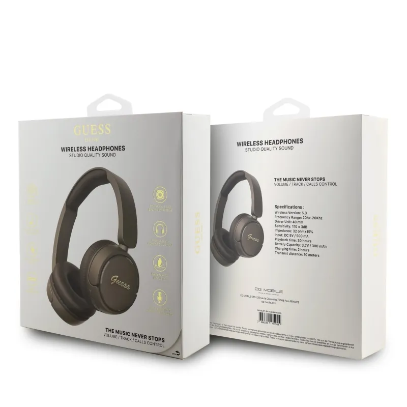 Bezdrôtové slúchadlá Guess Script Metal Logo Brown