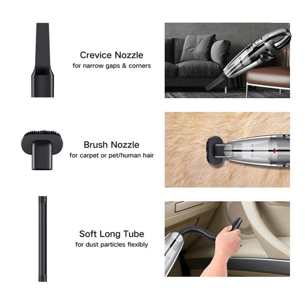 Vysávač je vhodný na čistenie interiéru auta, domácnosti aj kancelárie. Ideálny na odstránenie prachu, omrviniek, chlpov aj tekutín.