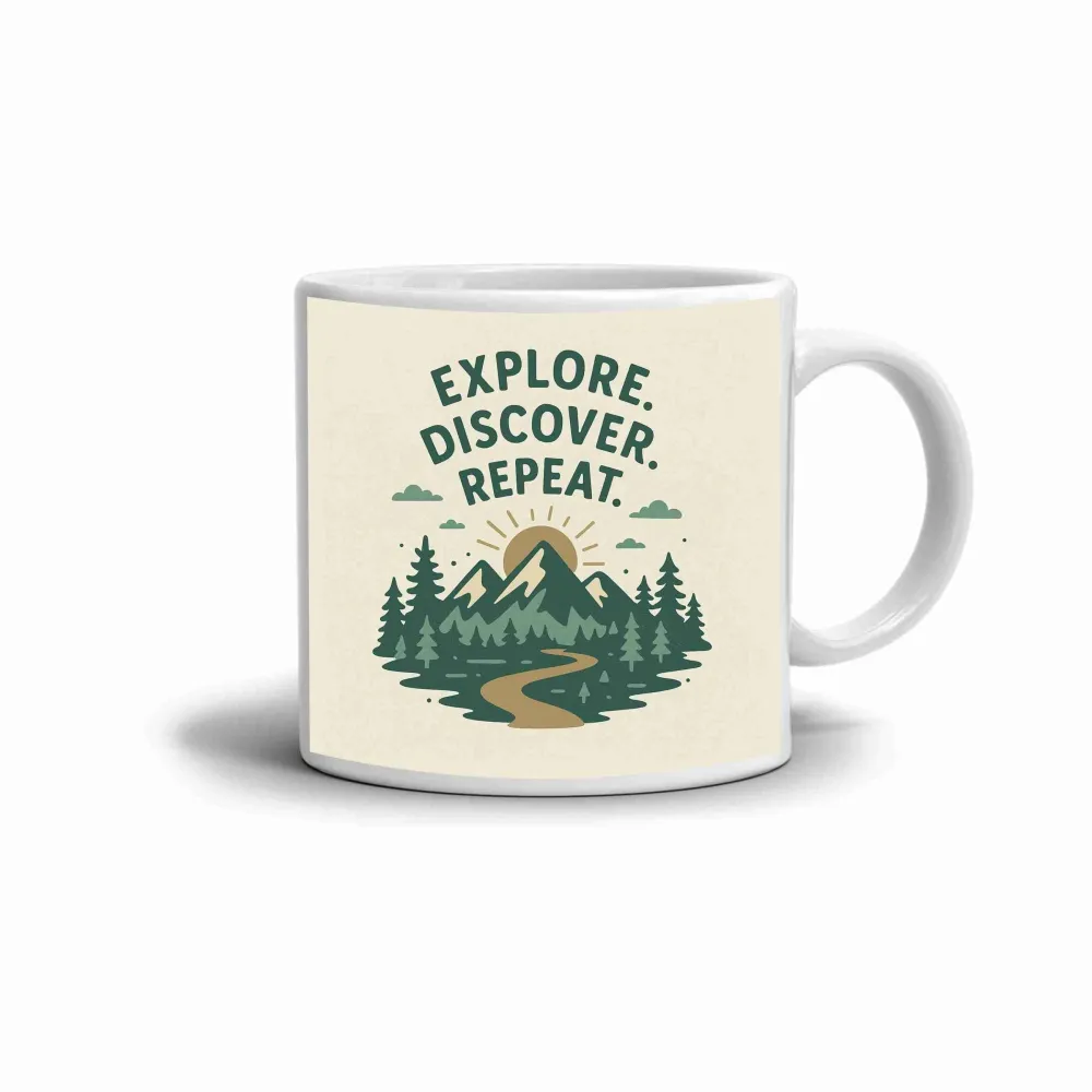 Biely keramický hrnček 330ml s obrázkom - explore repeat