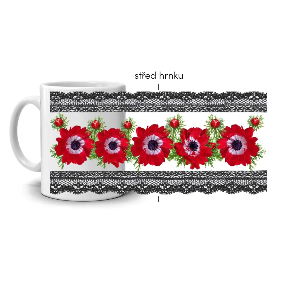 Originálny darček Hrnček s červeným kvetinovým motívom a čipkovaným lemom je ideálnym darčekom pre milovníkov elegancie, ženského štýlu a výrazných farieb. Svojím jedinečným vzhľadom dodá každému dňu energiu a šarm.