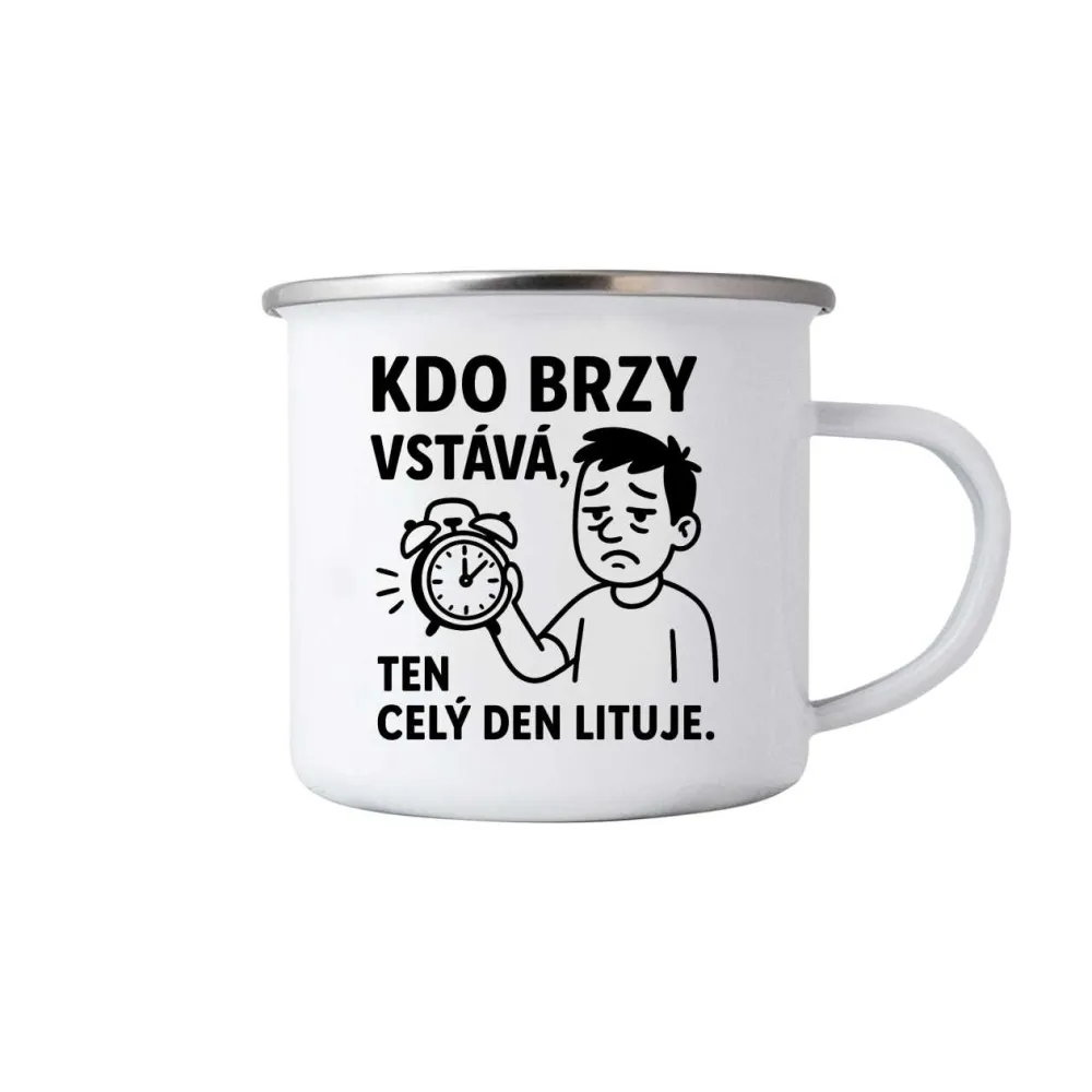Originálny plecháčik s vtipným motívom o vstávaní je skvelým darčekom pre kolegov, priateľov aj všetkých milovníkov kávičky. Pripomenie, že deň je vždy o niečo lepší, keď sa začne s úsmevom a šálkou obľúbeného nápoja.