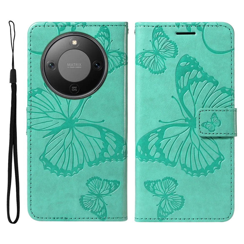 Big Butterfly knižkové puzdro na Honor Magic 8 Lite 5G - modrozelené