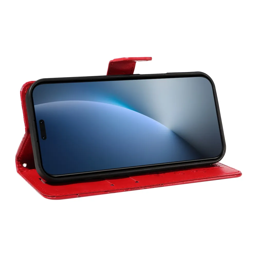 • Červená farba a jemný vzor motýľov podčiarkujú elegantný dizajn puzdra.