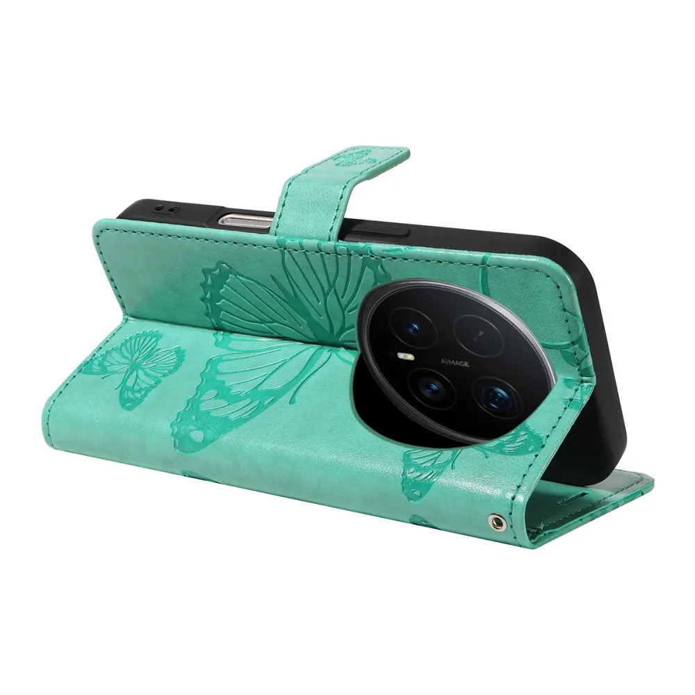 Modrozelené peňaženkové púzdro Big Butterfly na mobil Honor Magic 8 Pro 5G