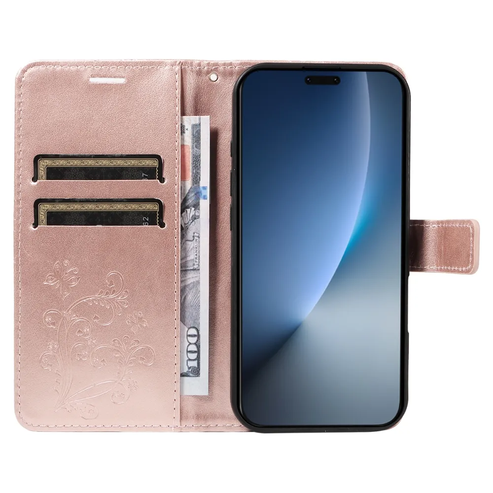 • Ružovovozlatá farba a zaujímavý vzor motýľov podčiarkujú elegantný dizajn puzdra.