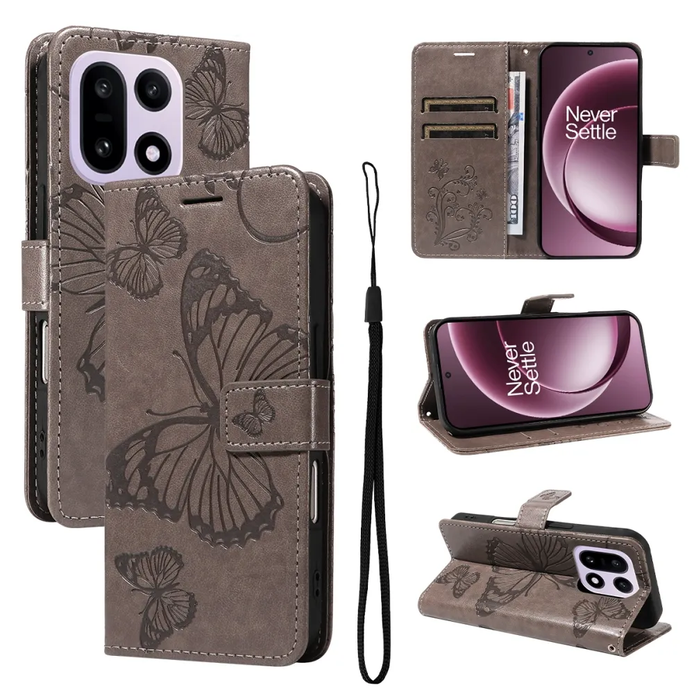 Big Butterfly knižkové puzdro na OnePlus 15 5G - šedé