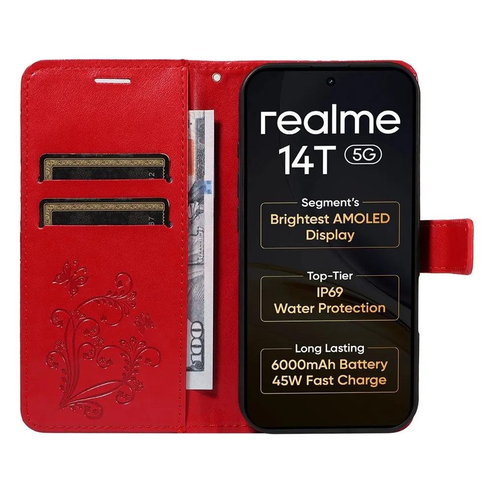 Big Butterfly knižkové puzdro na Realme 14 5G/14T 5G - červené