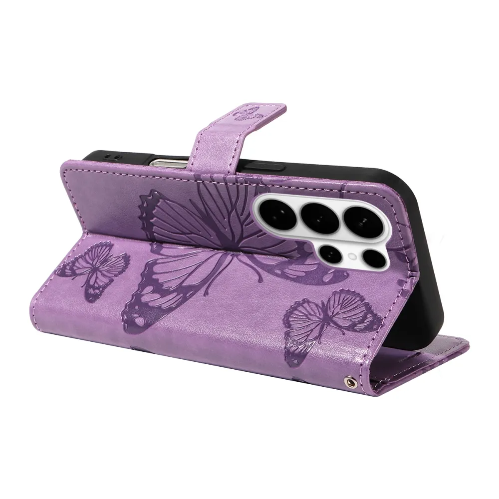 Fialové peňaženkové púzdro Big Butterfly na mobil Samsung Galaxy S26 Ultra