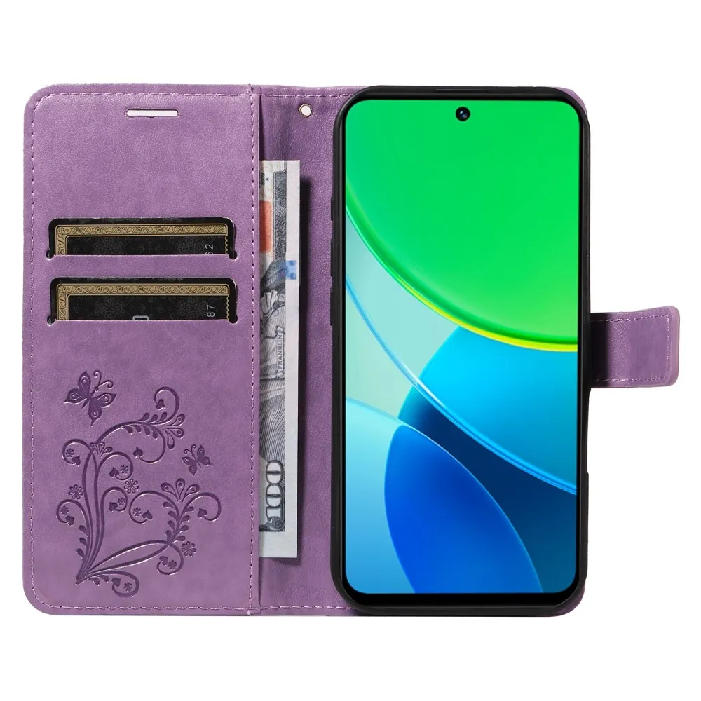 Fialové peňaženkové púzdro Big Butterfly na mobil Vivo Y19s