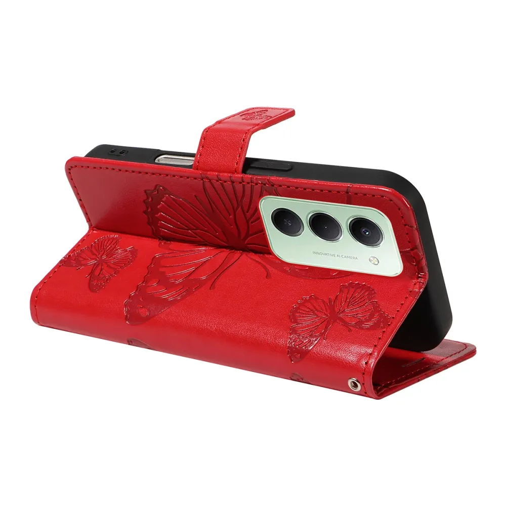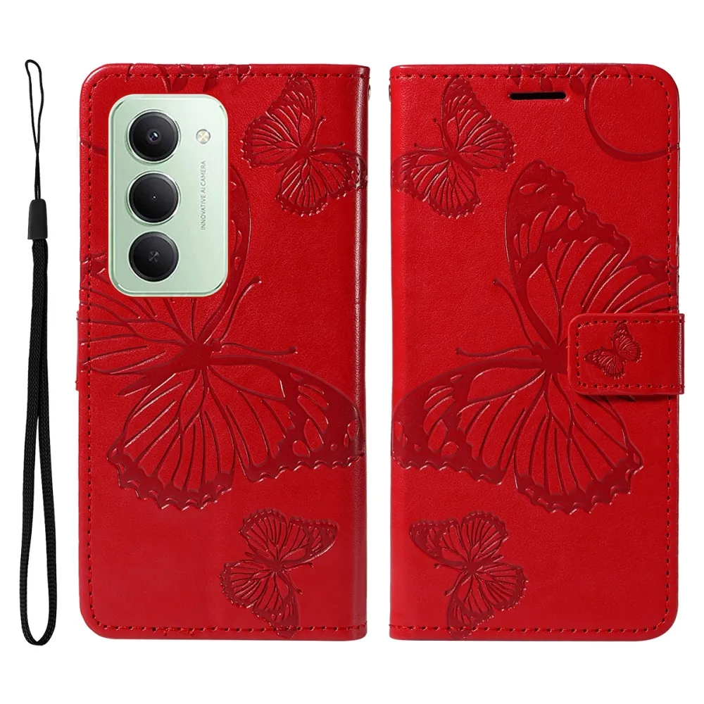 Červené peňaženkové puzdro Big Butterfly na mobil Xiaomi Redmi 15 4G (171mm)