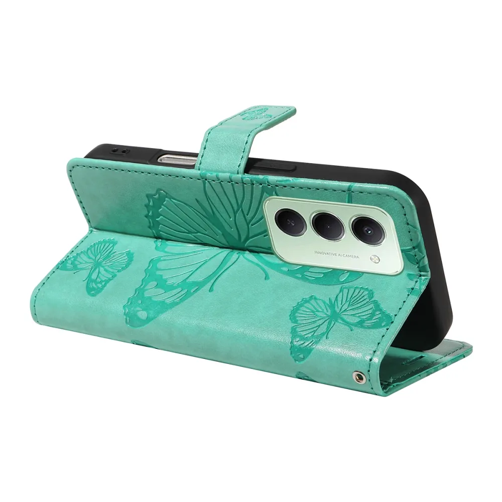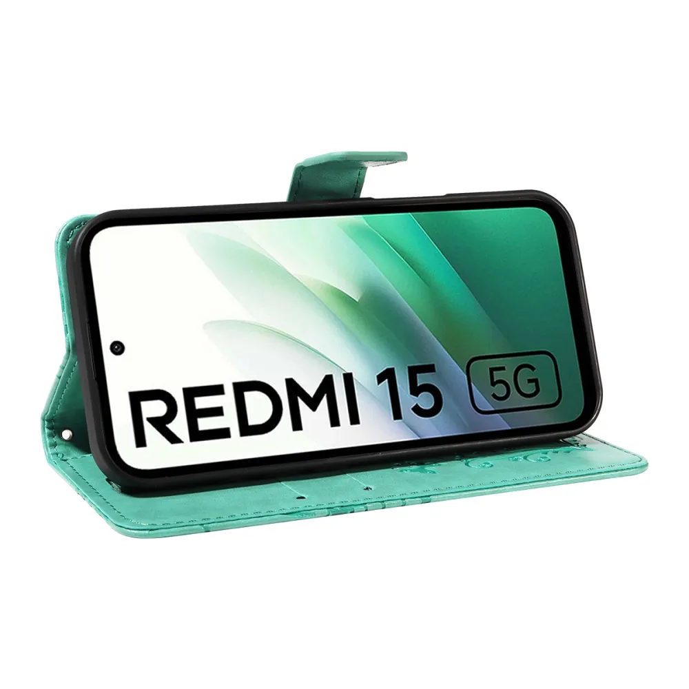 Modrozelené peňaženkové púzdro Big Butterfly na mobil Xiaomi Redmi 15 4G (171mm)