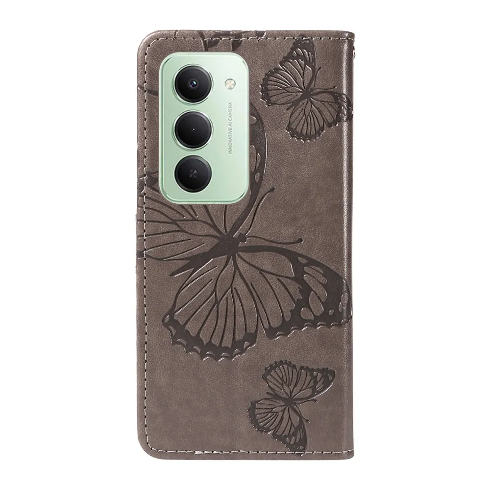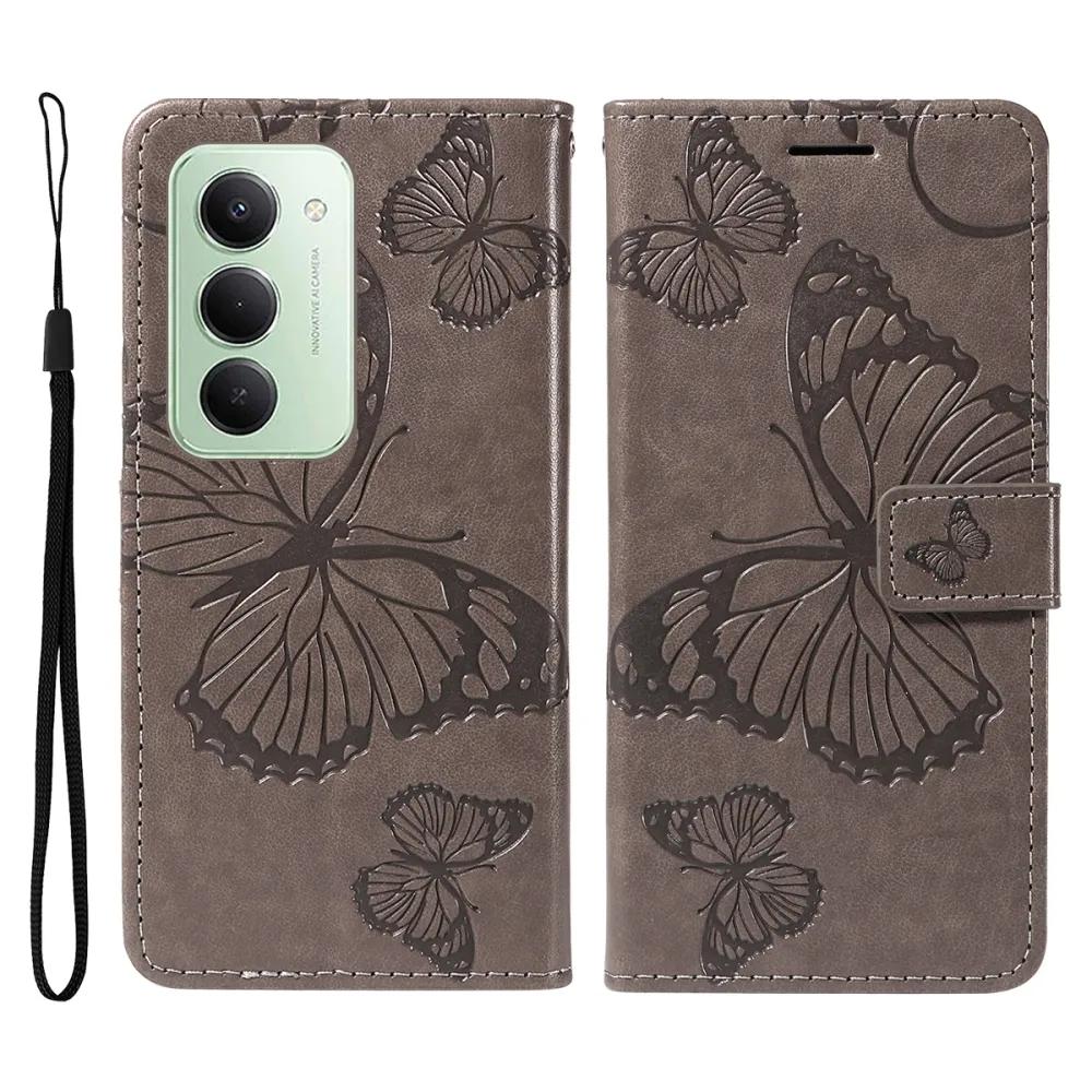 Šedé peňaženkové púzdro Big Butterfly na mobil Xiaomi Redmi 15 4G (171mm)