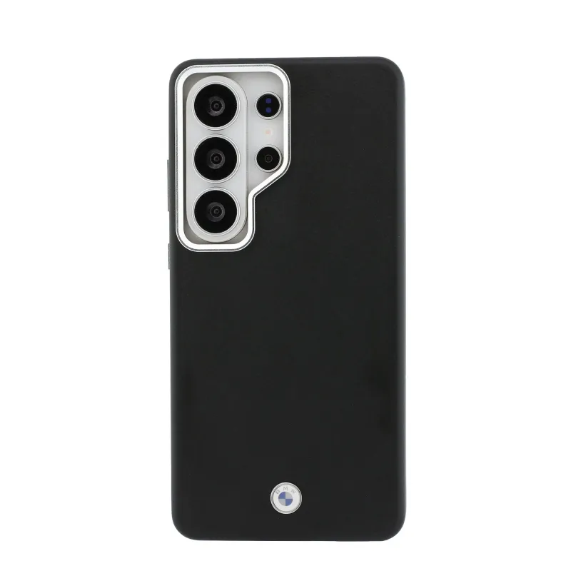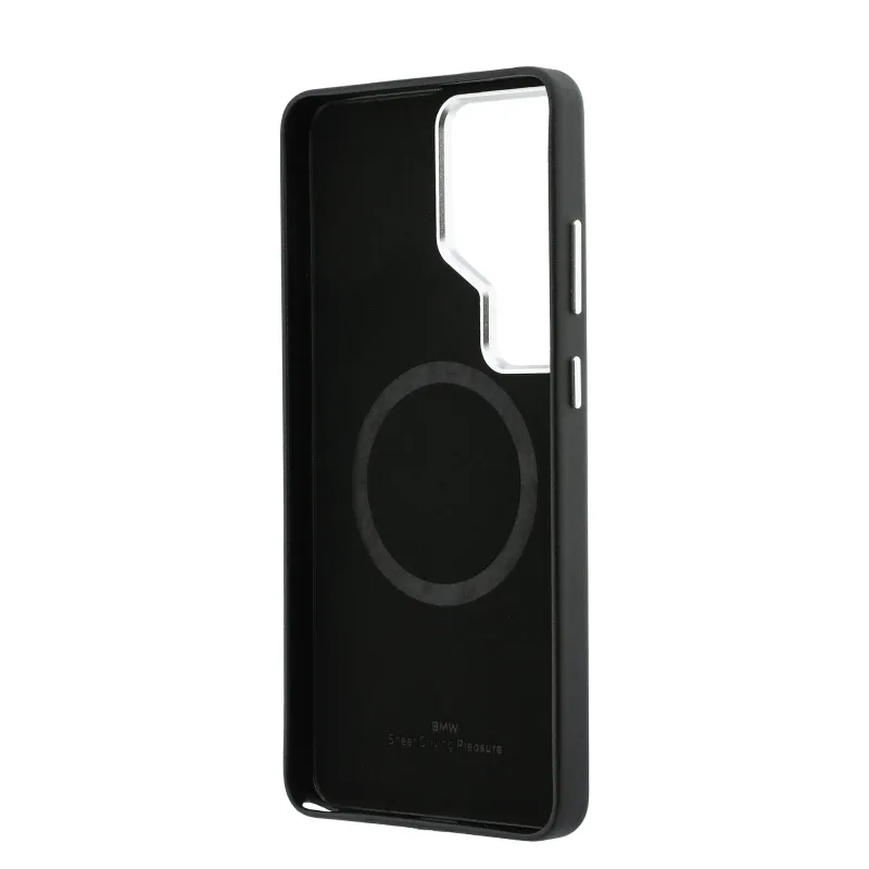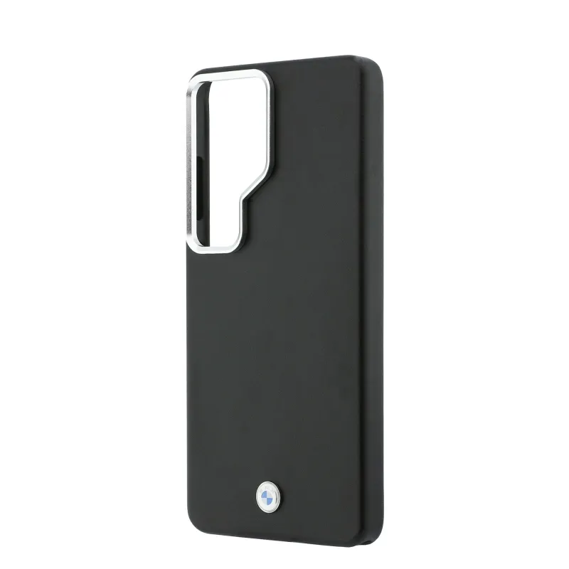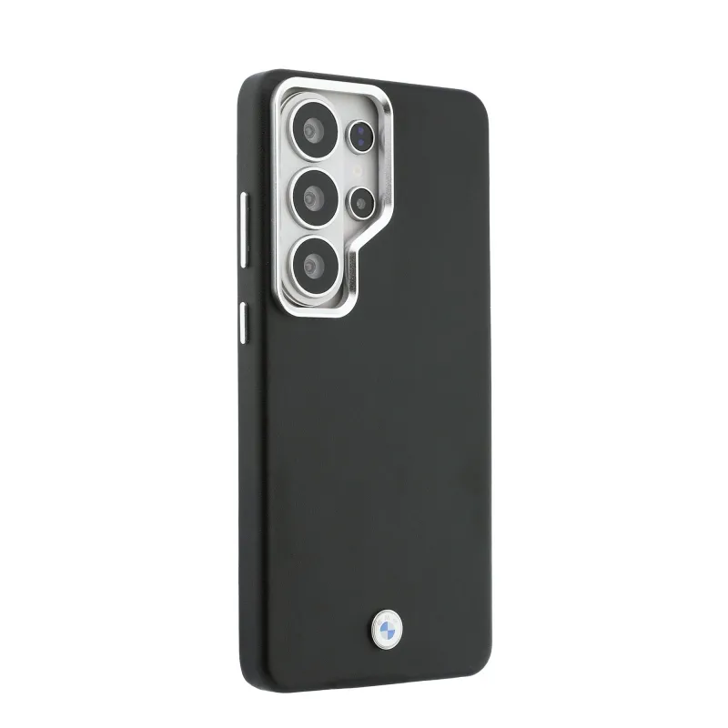 BMW Signature PU Leather Metal Logo Magnetic Back Cover pre Samsung Galaxy S26 Ultra Black