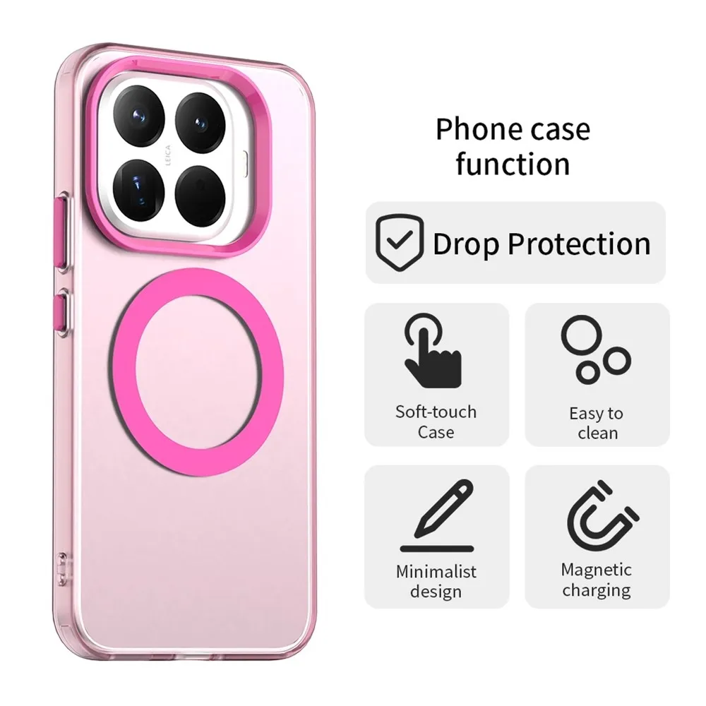 ✅【Vysoko kvalitný materiál】 Candy gélový obal s podporou MagSafe na mobil Xiaomi 15T Pro v ružovej farbe je vyrobený z prémiového PC + TPU + PET materiálu, chráni telefón pred poškriabaním, nárazmi a iným každodenným poškodením