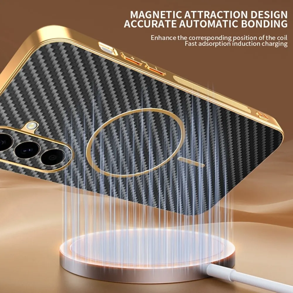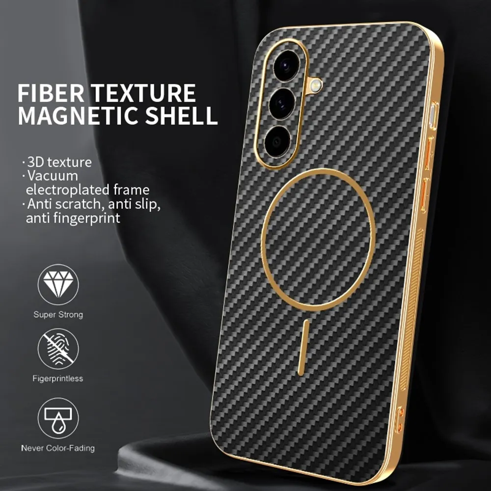 Texturovaný povrch s karbónovým vzorom dodáva tomuto púzdru prémiový a technicky ladený vzhľad, ktorý skvele dopĺňa dizajn telefónu Samsung Galaxy A57 5G. Čierne detaily vrátane magnetického kruhu vytvárajú elegantný kontrast a sú presne navrhnuté na kompatibilitu s magnetickým príslušenstvom tohto modelu. Pevný, ale štíhly obal kopíruje tvar zariadenia, chráni chrbát aj hrany a zachováva pohodlný úchop. Tento kryt patrí medzi púzdra, ktoré spájajú výrazný štýl s ochranou vytvorenou na mieru konkrétnemu telefónu. ✅【TPU materiál】Flexibilná a odolná konštrukcia z TPU poskytuje vynikajúce tlmenie nárazov a perfektné prispôsobenie vášmu telefónu. ✅【Prémiová galvanicky pokovovaná povrchová úprava】Vysoko kvalitné galvanické pokovovanie zvyšuje odolnosť a estetický vzhľad. ✅【Odolnosť proti odtlačkom prstov】Špeciálny textúrovaný povlak z uhlíkových vlákien odpudzuje odtlačky prstov, takže kryt telefónu zostane čistý a elegantný. ✅【Zvýšená ochrana fotoaparátu a obrazovky】Odolný materiál so zvýšenými okrajmi chráni pred poškriabaním a zachovávajú tak dokonalý vzhľad krytu. ✅【Presné výrezy a protišmyková úprava】Presne navrhnuté otvory zaisťujú ľahký prístup ku všetkým portom a tlačidlám; textúrované boky poskytujú bezpečné uchytenie a znižujú riziko náhodného pádu. ✅【Kompatibilný s magnetickou nabíjačkou】Vstavaný nemagnetický plech umožňuje bezproblémové použitie s magnetickými držiakmi.