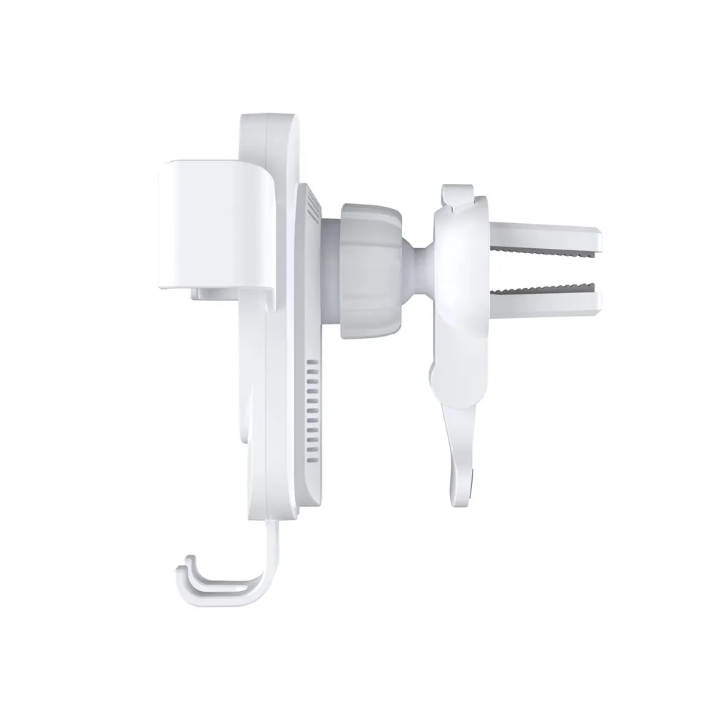 Držiak sa jednoducho upevňuje do ventilačnej mriežky automobilu, kde drží stabilne aj počas jazdy. Konštrukcia umožňuje jednoduché vloženie aj vybratie telefónu jednou rukou, čo zvyšuje komfort aj bezpečnosť pri šoférovaní. Nabíjačka podporuje rôzne výkony podľa zariadenia a automaticky sa prispôsobí na optimálne nabíjanie.