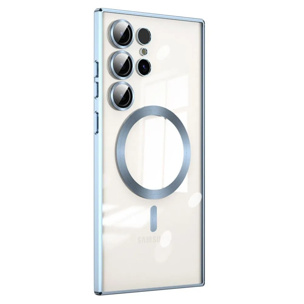 Modrý kryt Clear s ochranou fotoaparátu a podporou MagSafe na Samsung Galaxy S23 Ultra