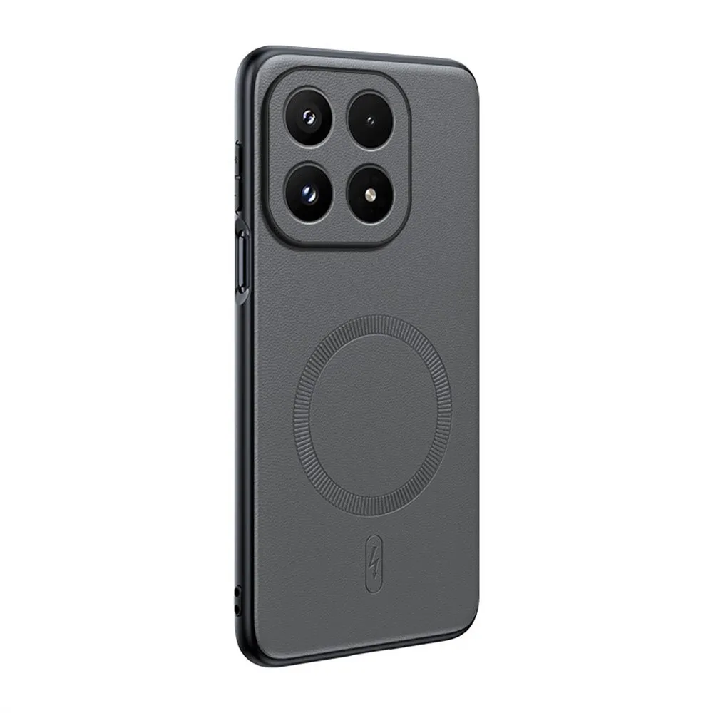Coated gélový obal s umelou kožou a MagSafe na Xiaomi 17 - šedý