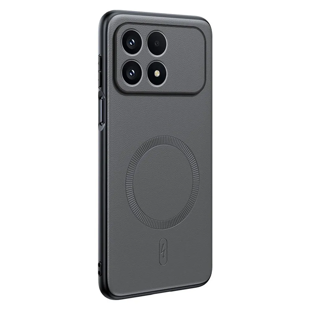 Šedý gélový kryt Coated s umelou kožou a MagSafe na mobil Xiaomi Poco F8 Pro 5G