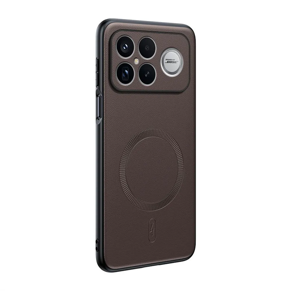 Hnedý gélový kryt Coated s umelou kožou a MagSafe na mobil Xiaomi Poco F8 Ultra 5G
