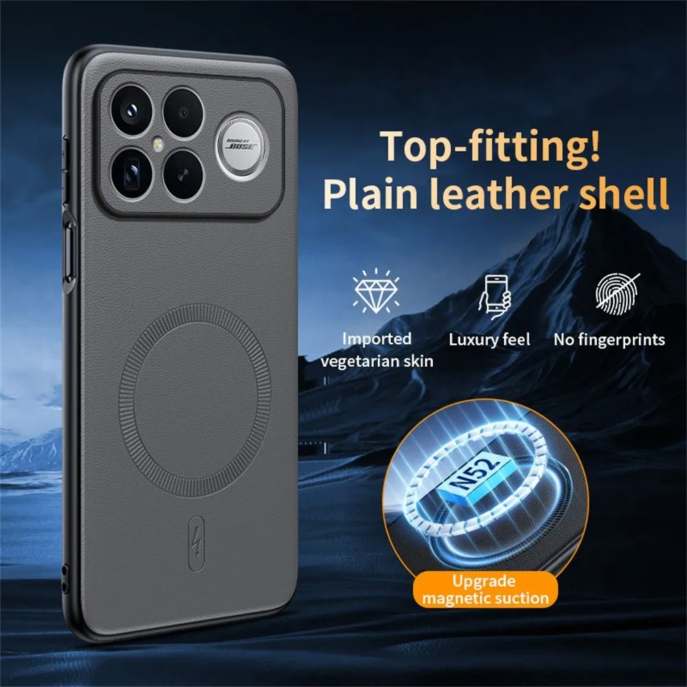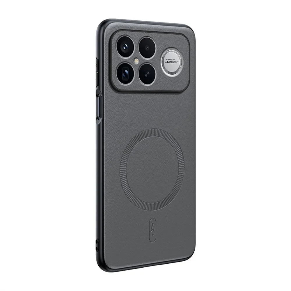 Šedý gélový kryt Coated s umelou kožou a MagSafe na mobil Xiaomi Poco F8 Ultra 5G