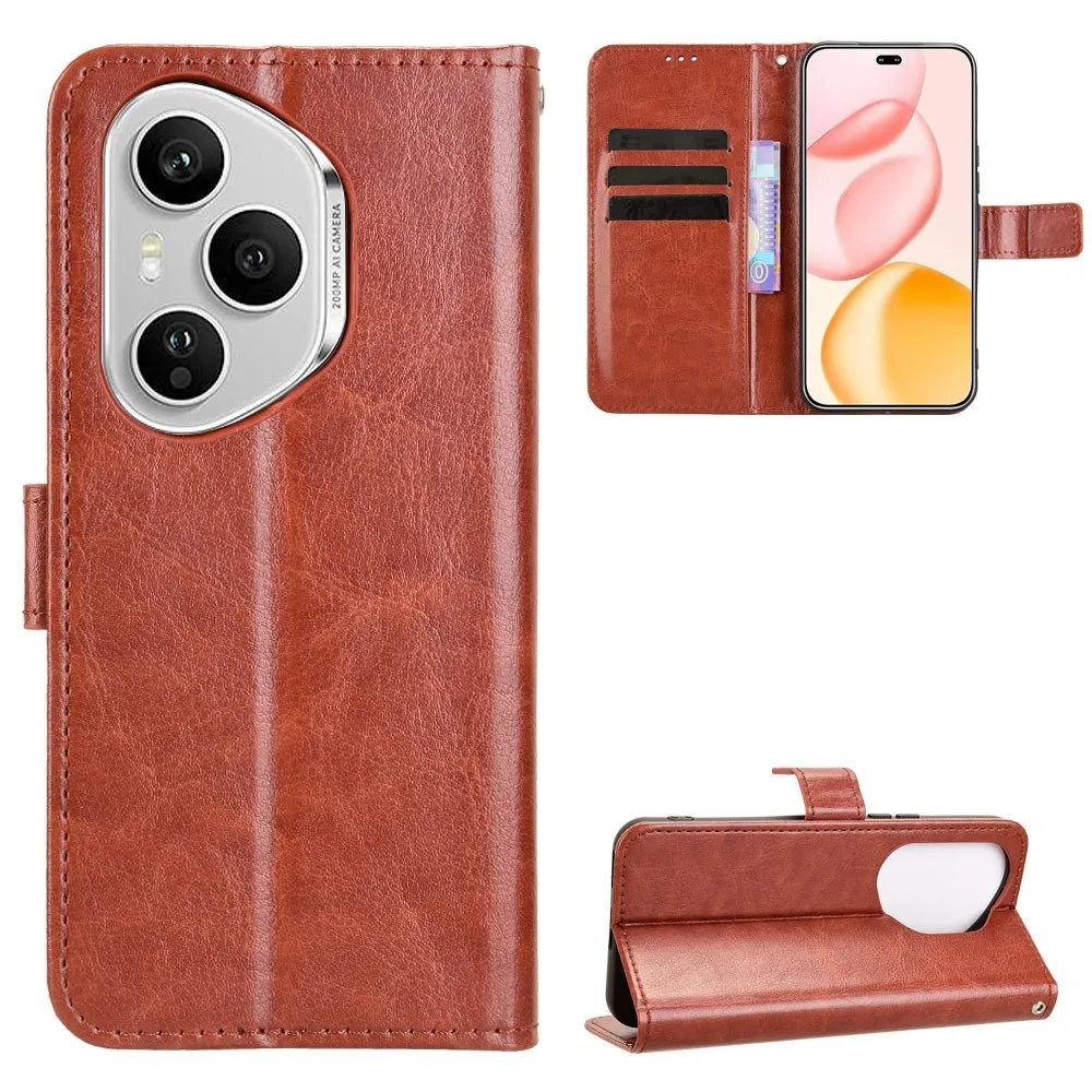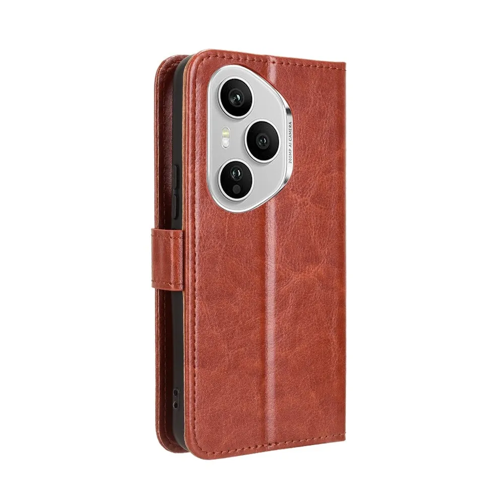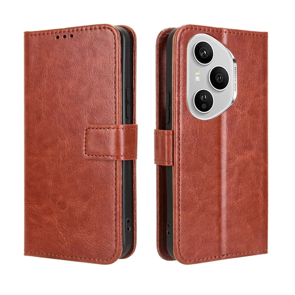 Hnedé peňaženkové puzdro Crazy na mobil Honor 400 Pro