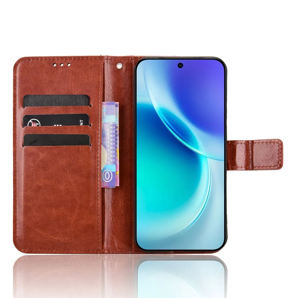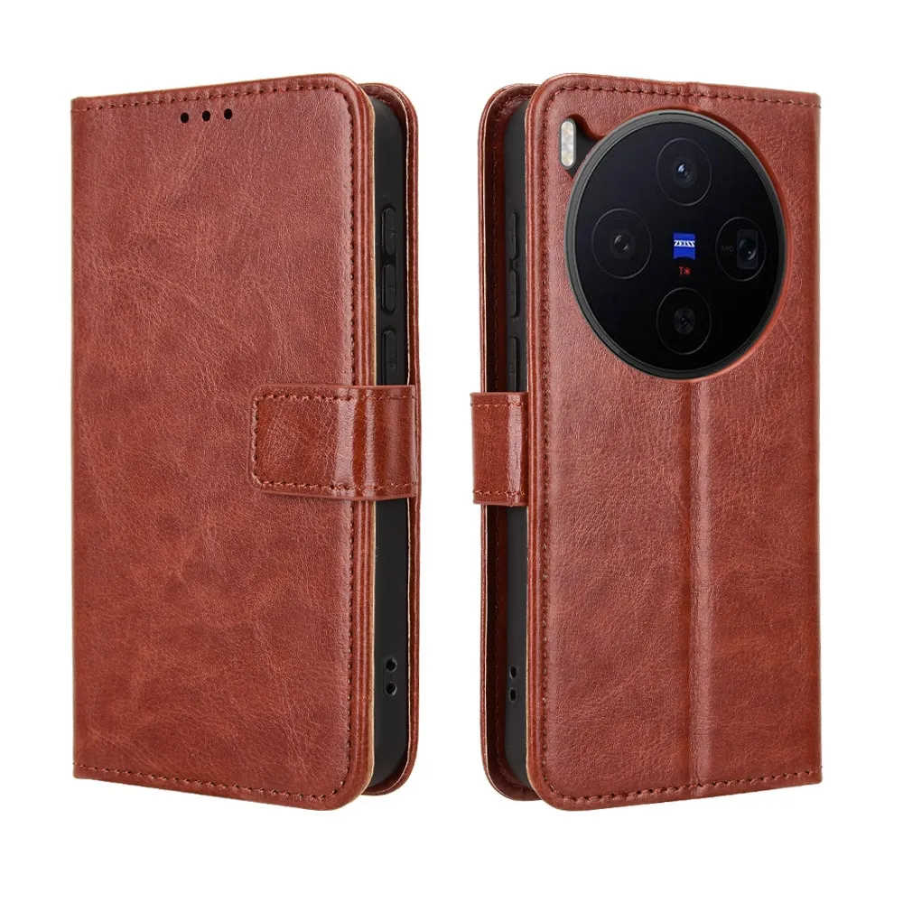 Hnedé peňaženkové púzdro Crazy na mobil Vivo X300 5G