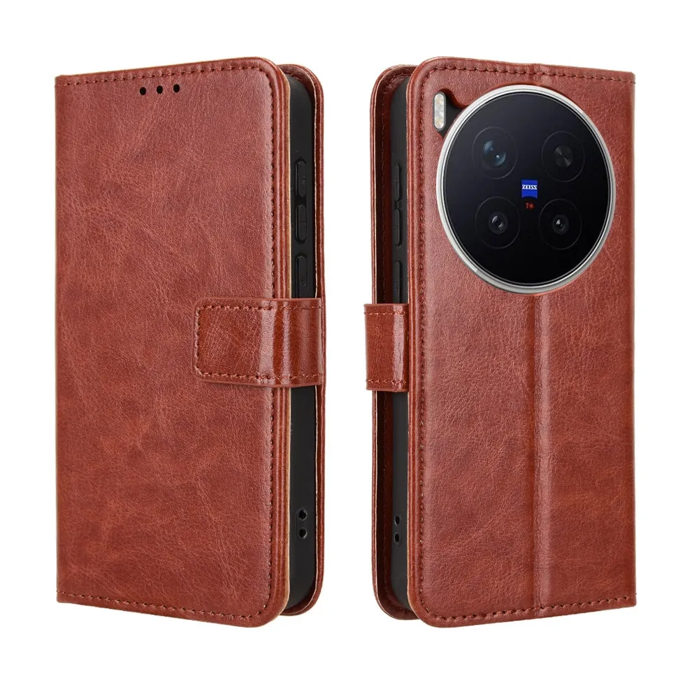 Hnedé peňaženkové púzdro Crazy na mobil Vivo X300 Pro 5G