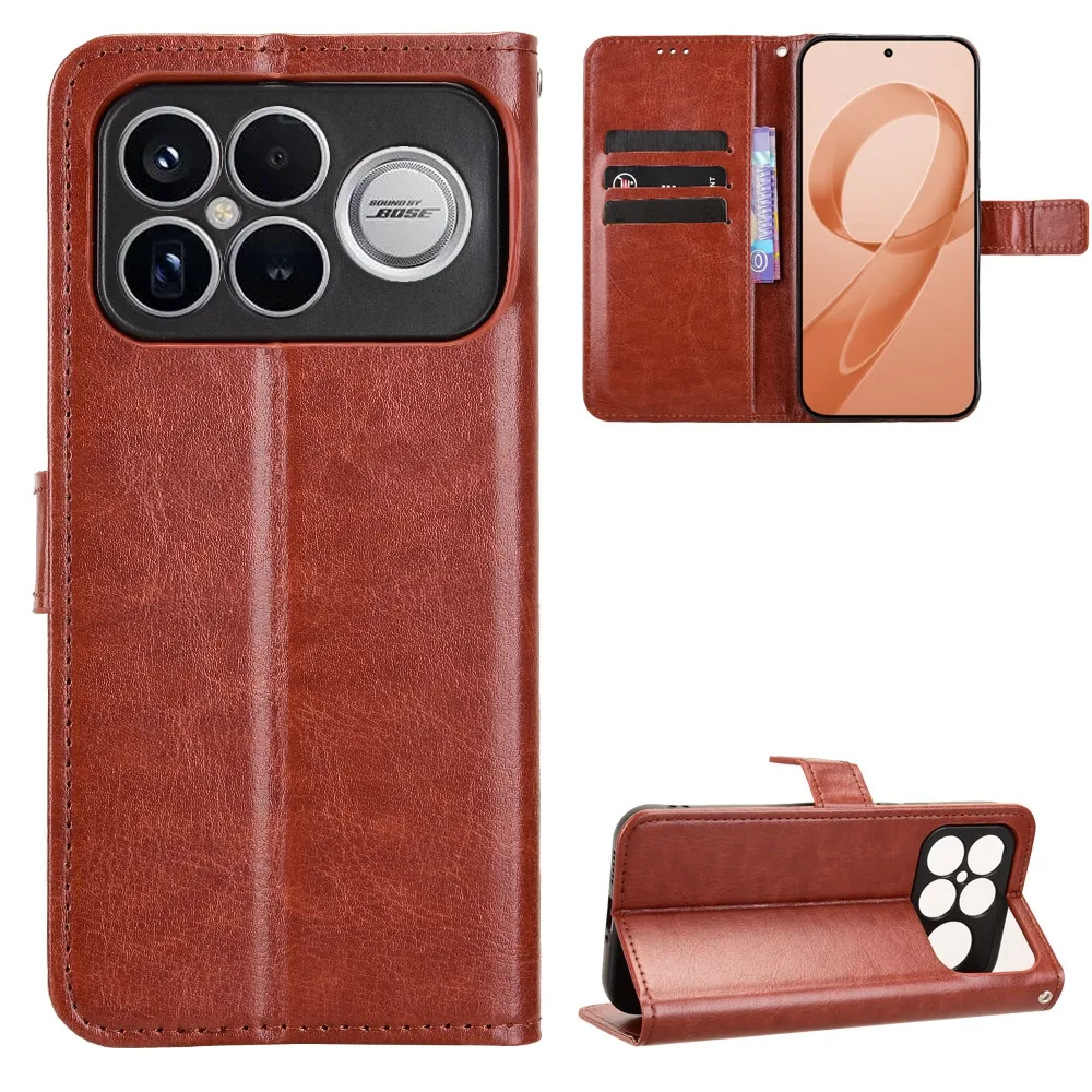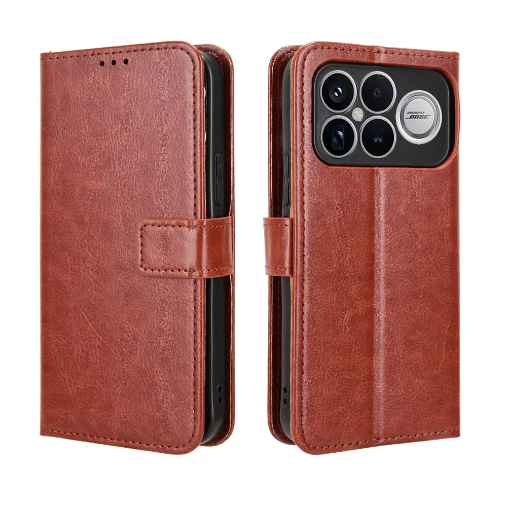 Crazy knižkové púzdro na Xiaomi Poco F8 Ultra 5G - hnedé