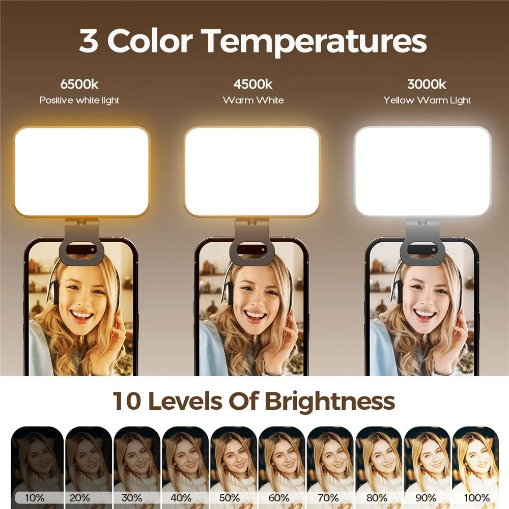 Kompaktné biele LED prisvetlenie s klipom, 3 teplotami svetla a batériou 2000 mAh pre livestream, fotenie aj videohovory.