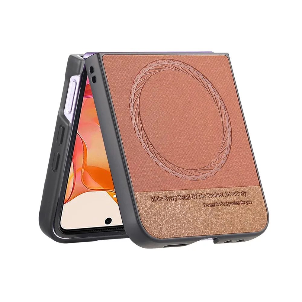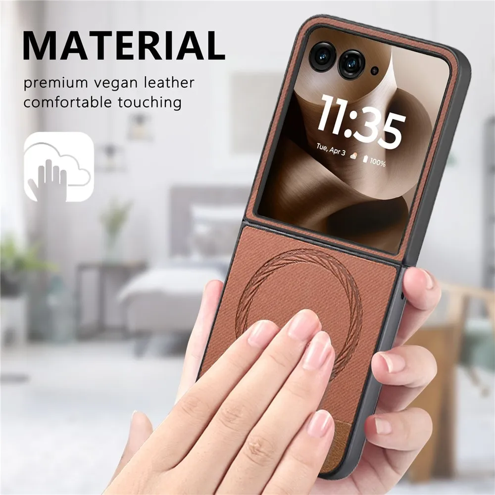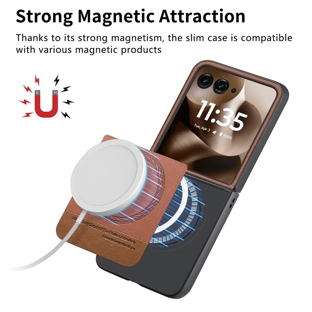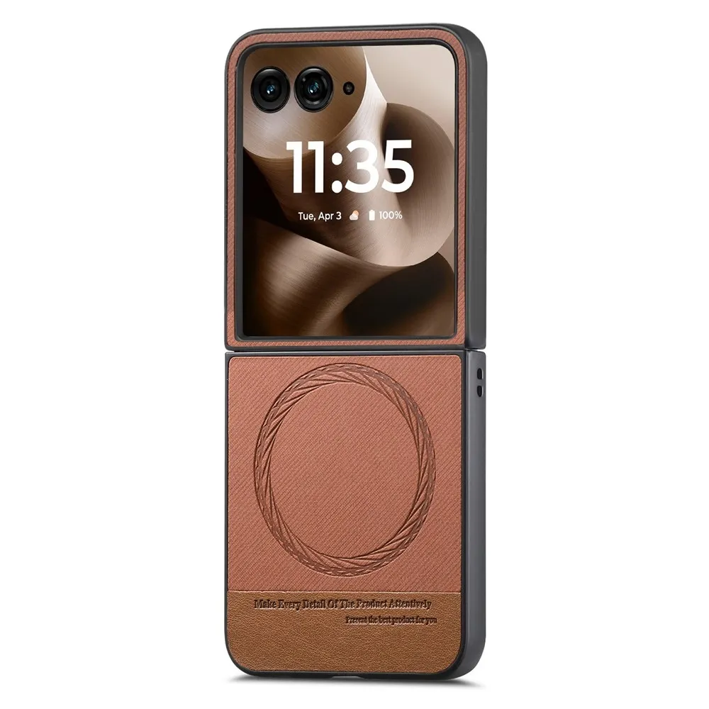Denim plastový kryt s umelou kožou a MagSafe na Motorola Razr 60 Ultra 5G - hnedý