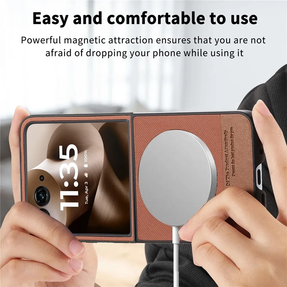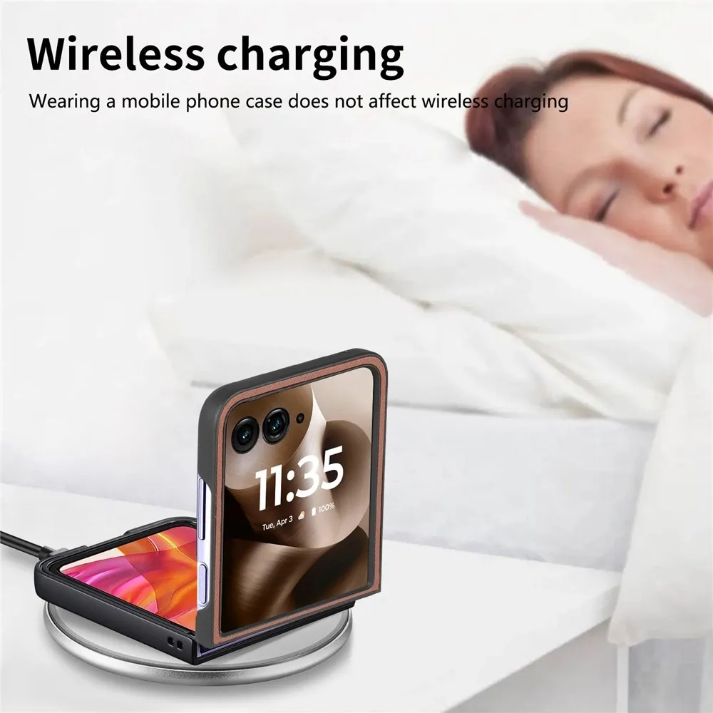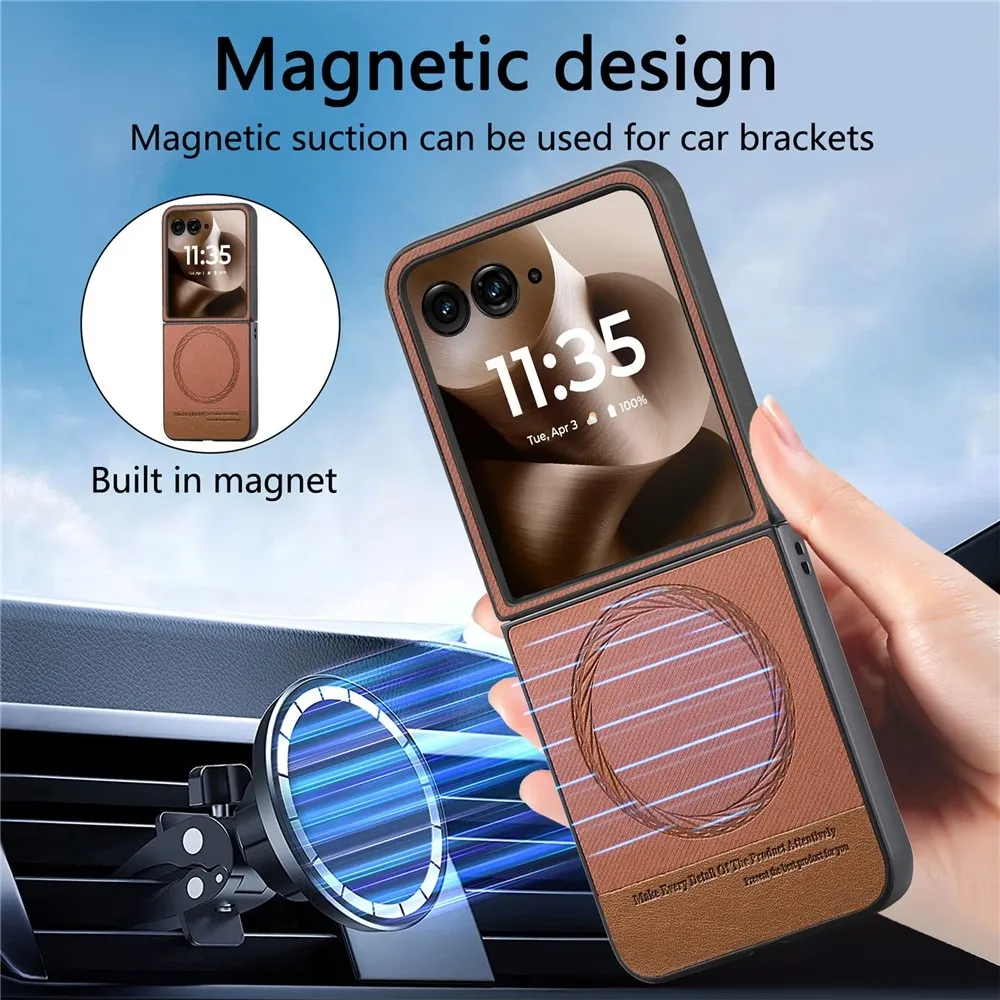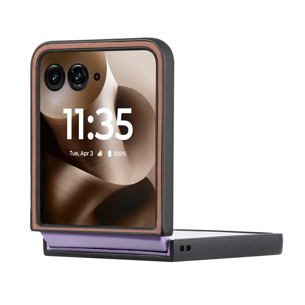 Denim plastový kryt s umelou kožou a MagSafe na Motorola Razr 60 Ultra 5G - hnedý