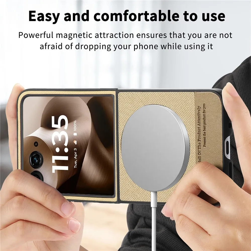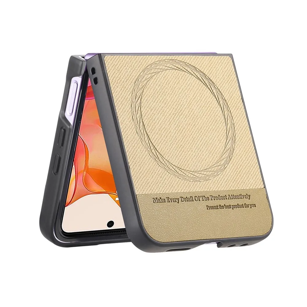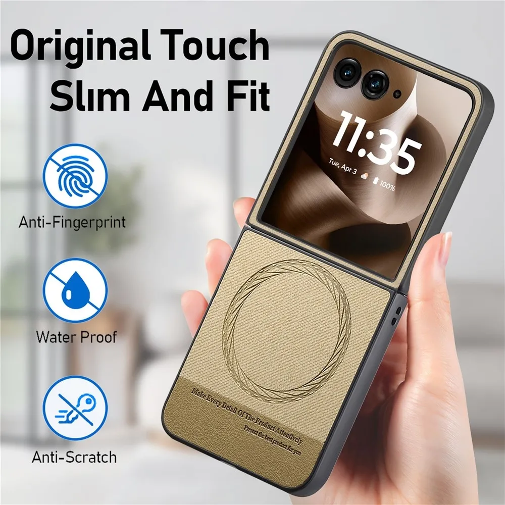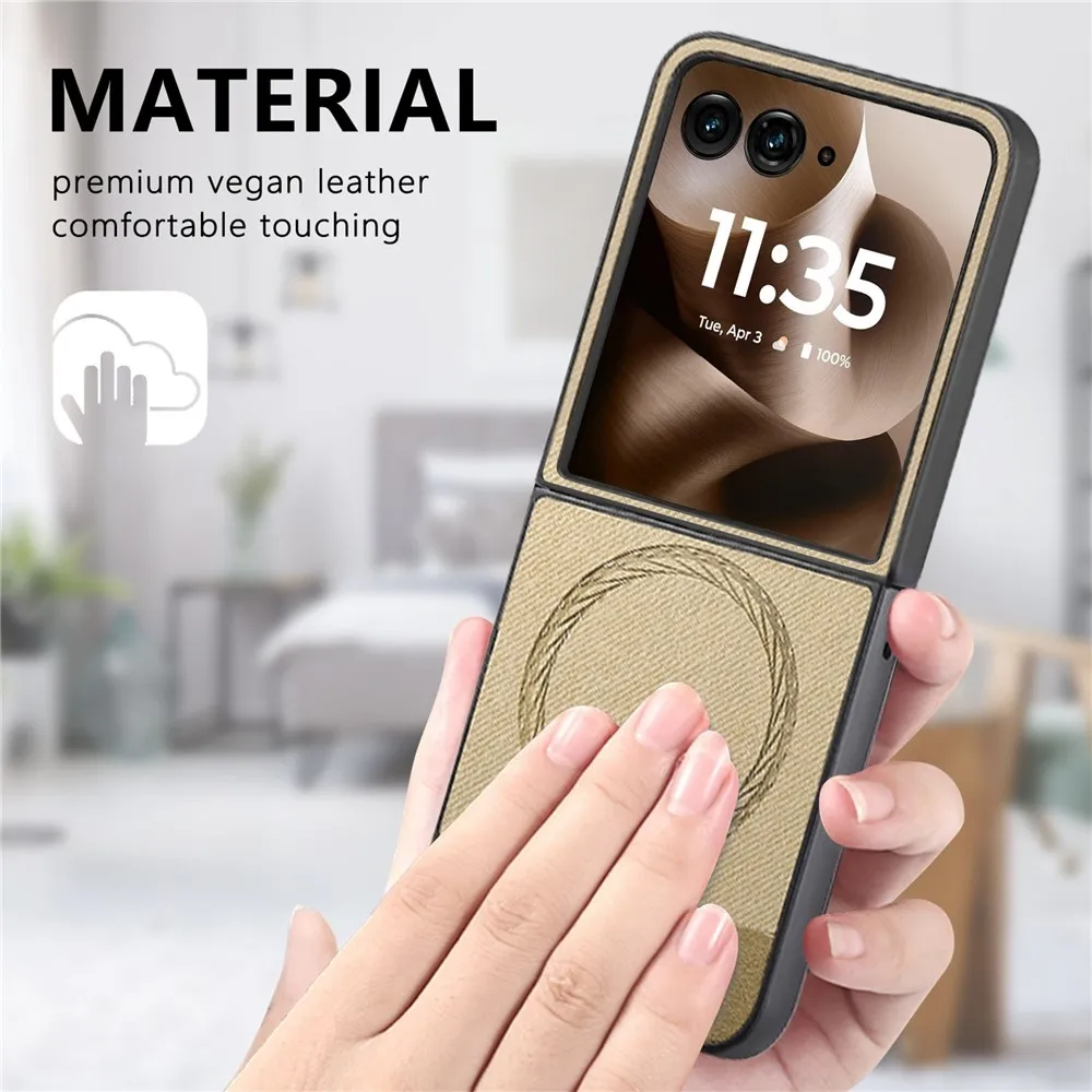 Denim plastový kryt s umelou kožou a MagSafe na Motorola Razr 60 Ultra 5G - khaki