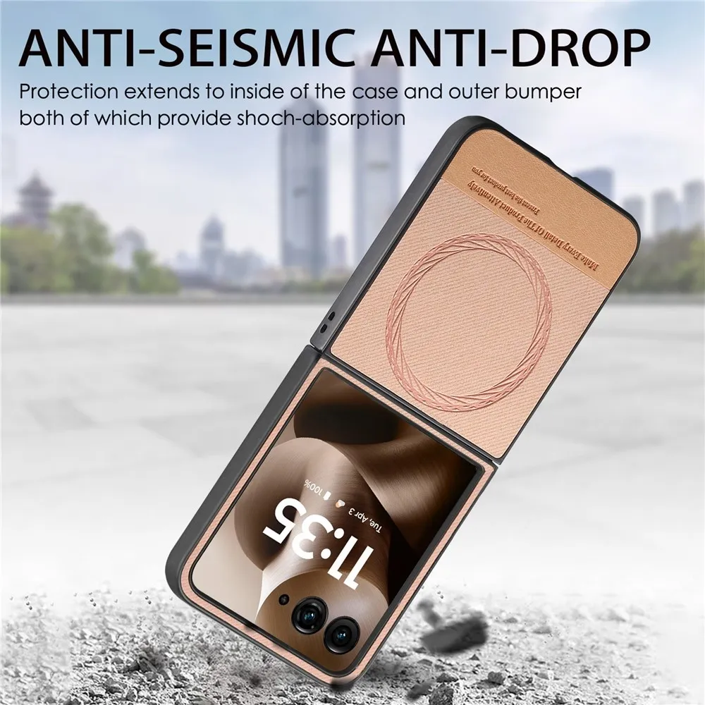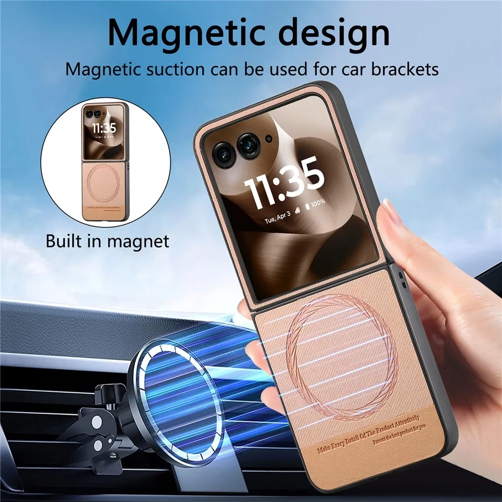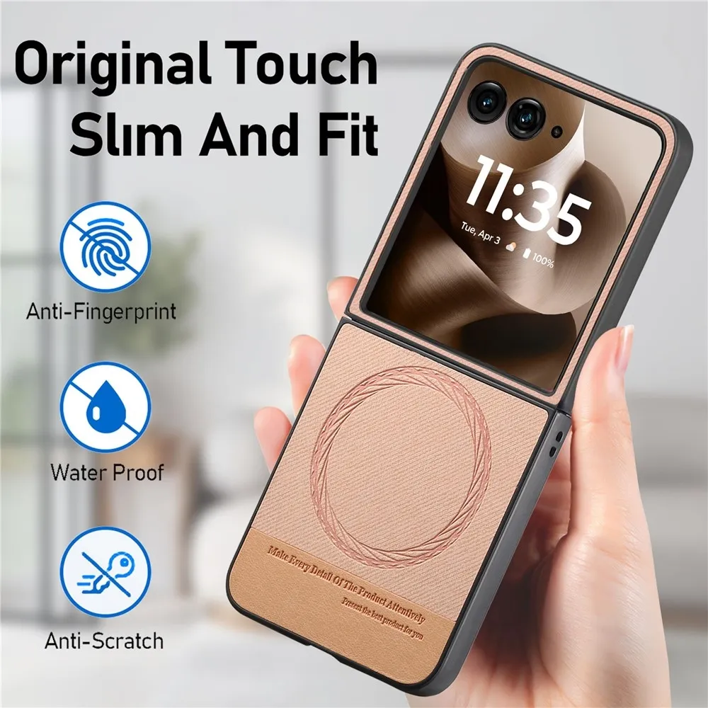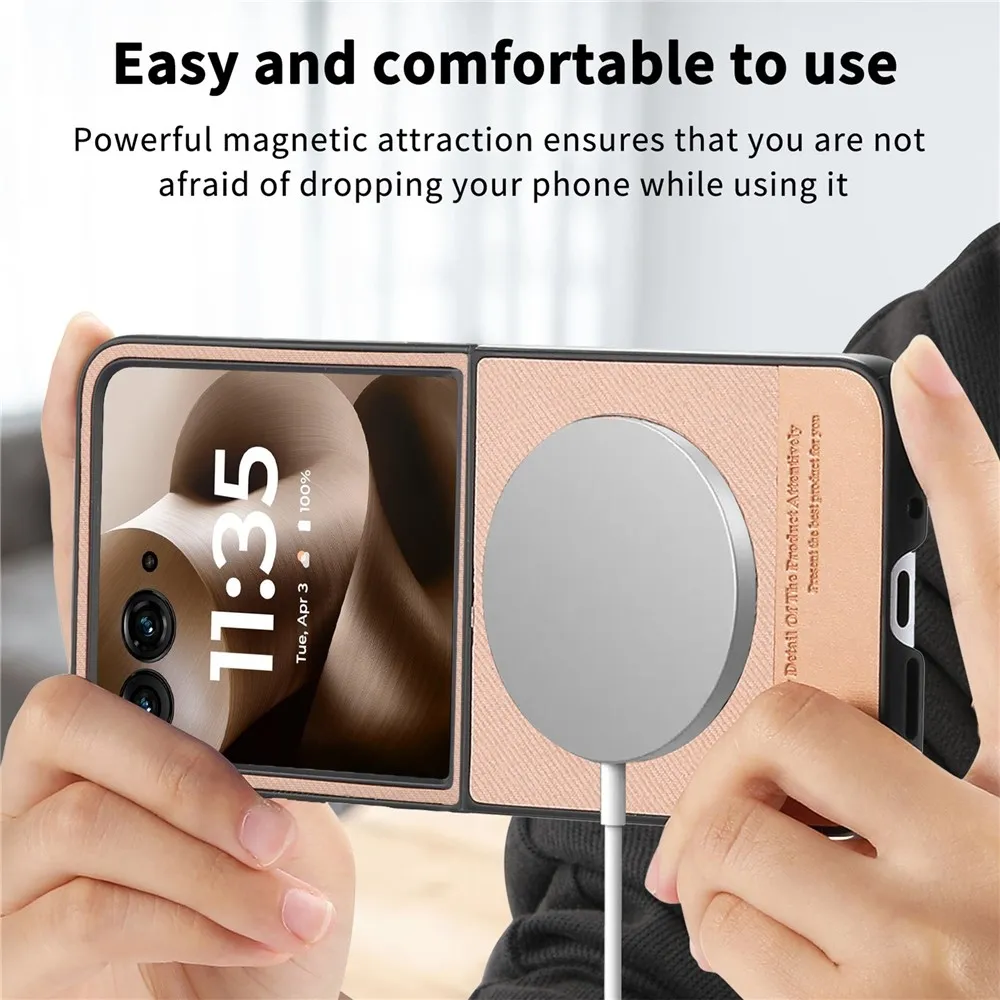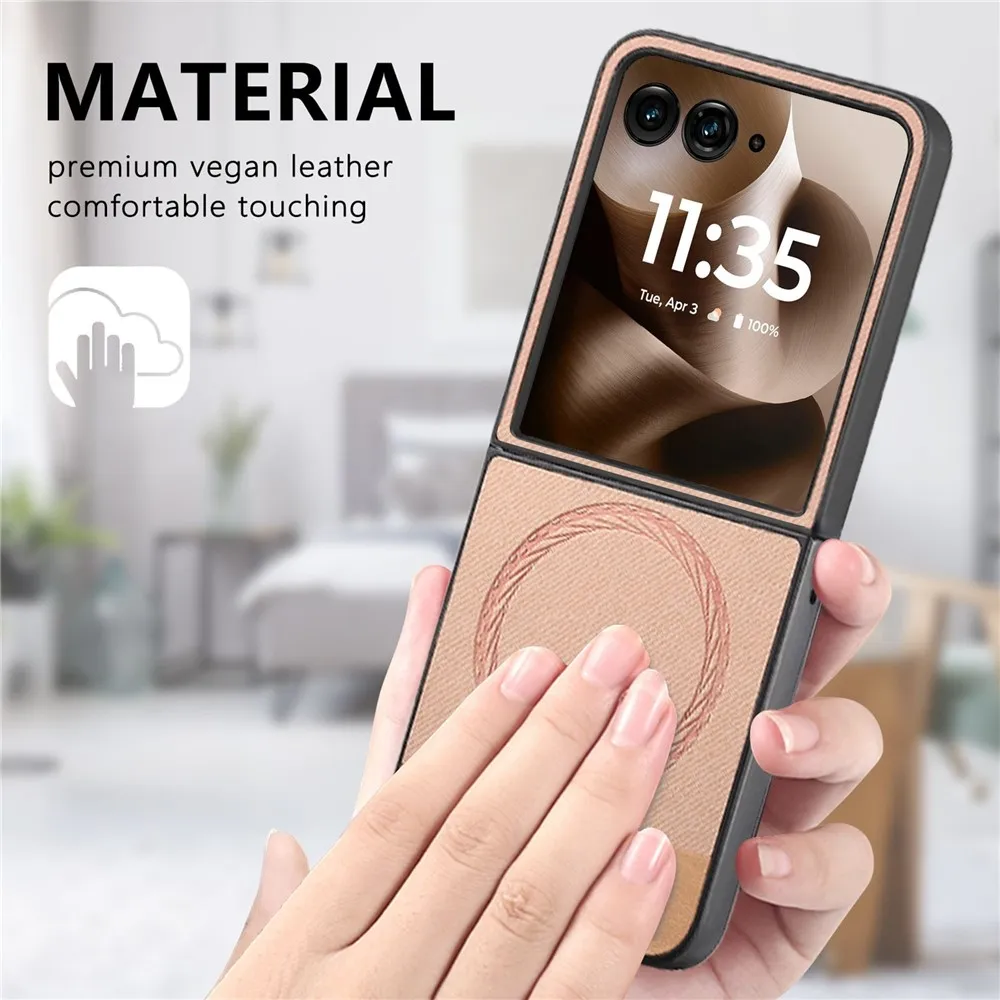 Denim plastový kryt s umelou kožou a MagSafe na Motorola Razr 60 Ultra 5G - ružový