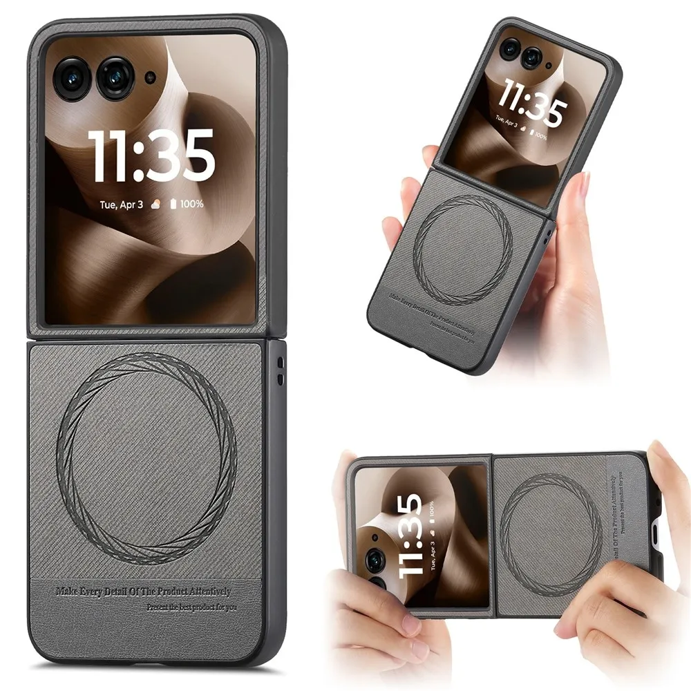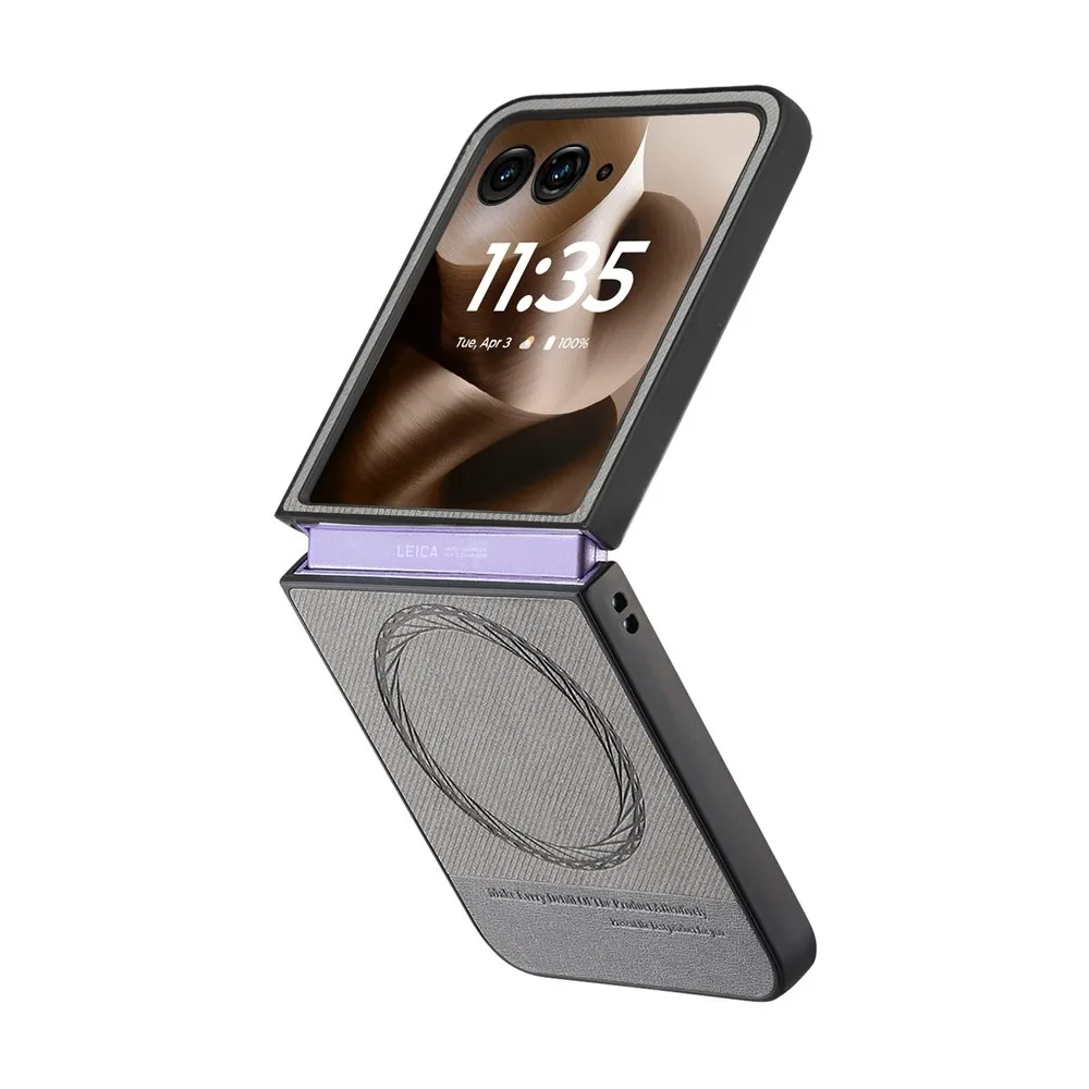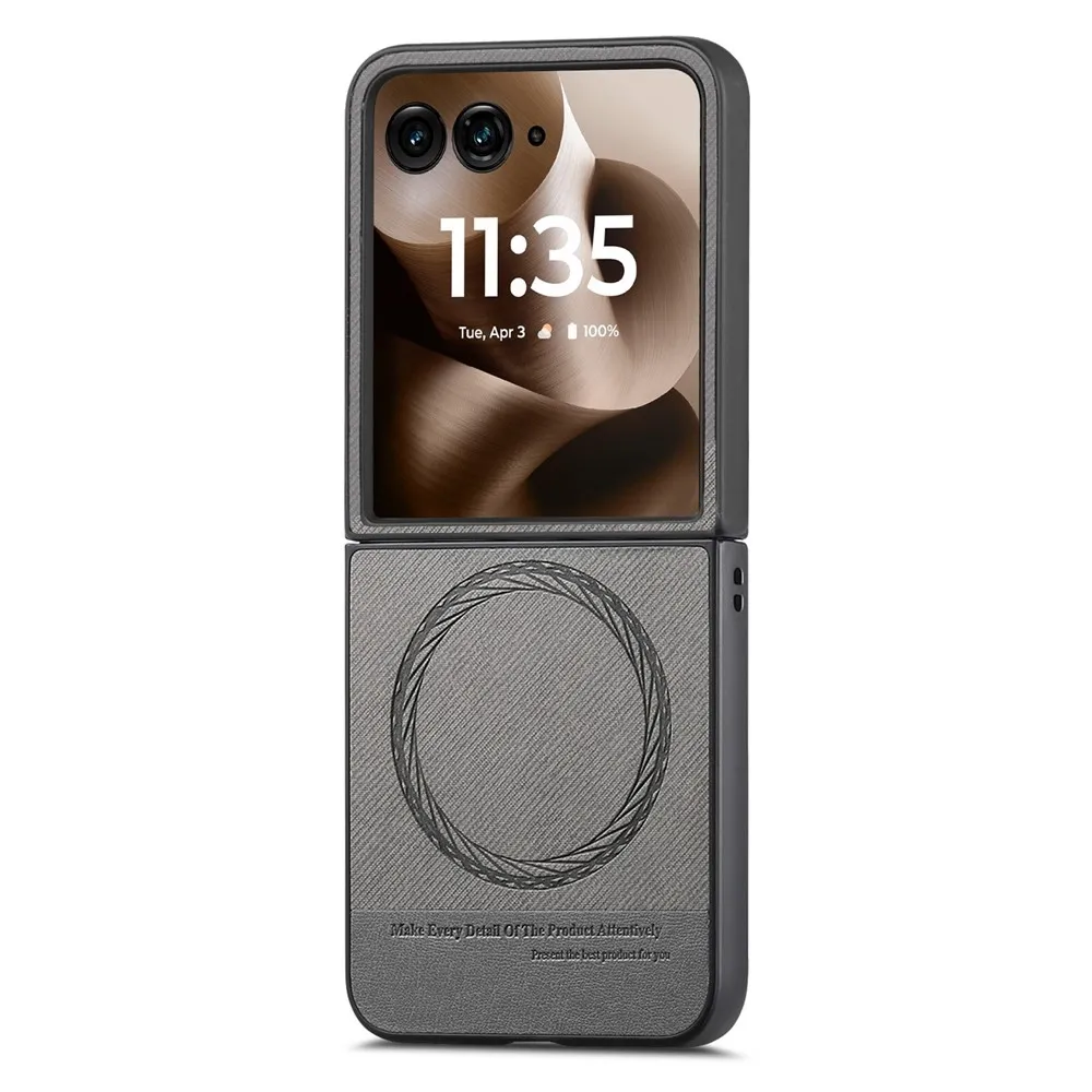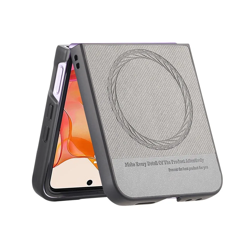 Denim plastový kryt s umelou kožou a MagSafe na Motorola Razr 60 Ultra 5G - šedý