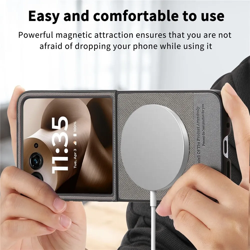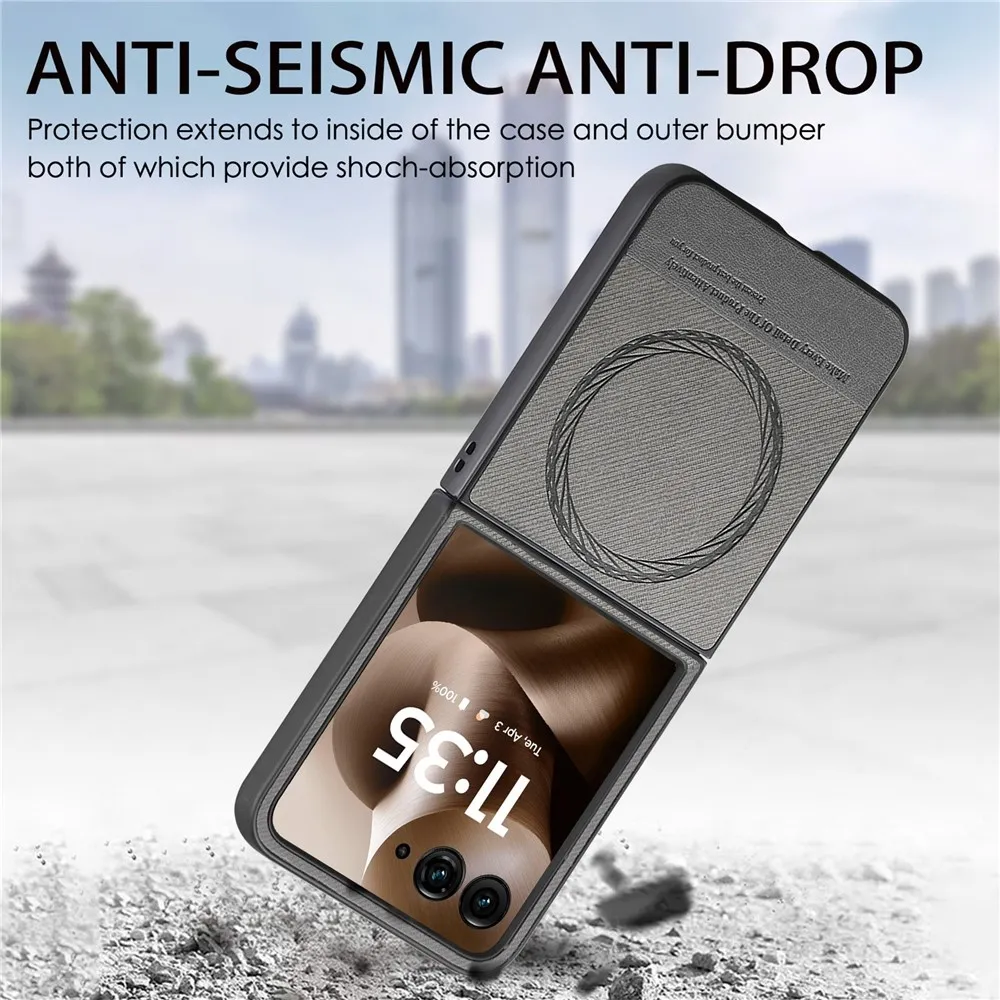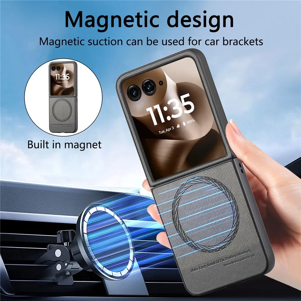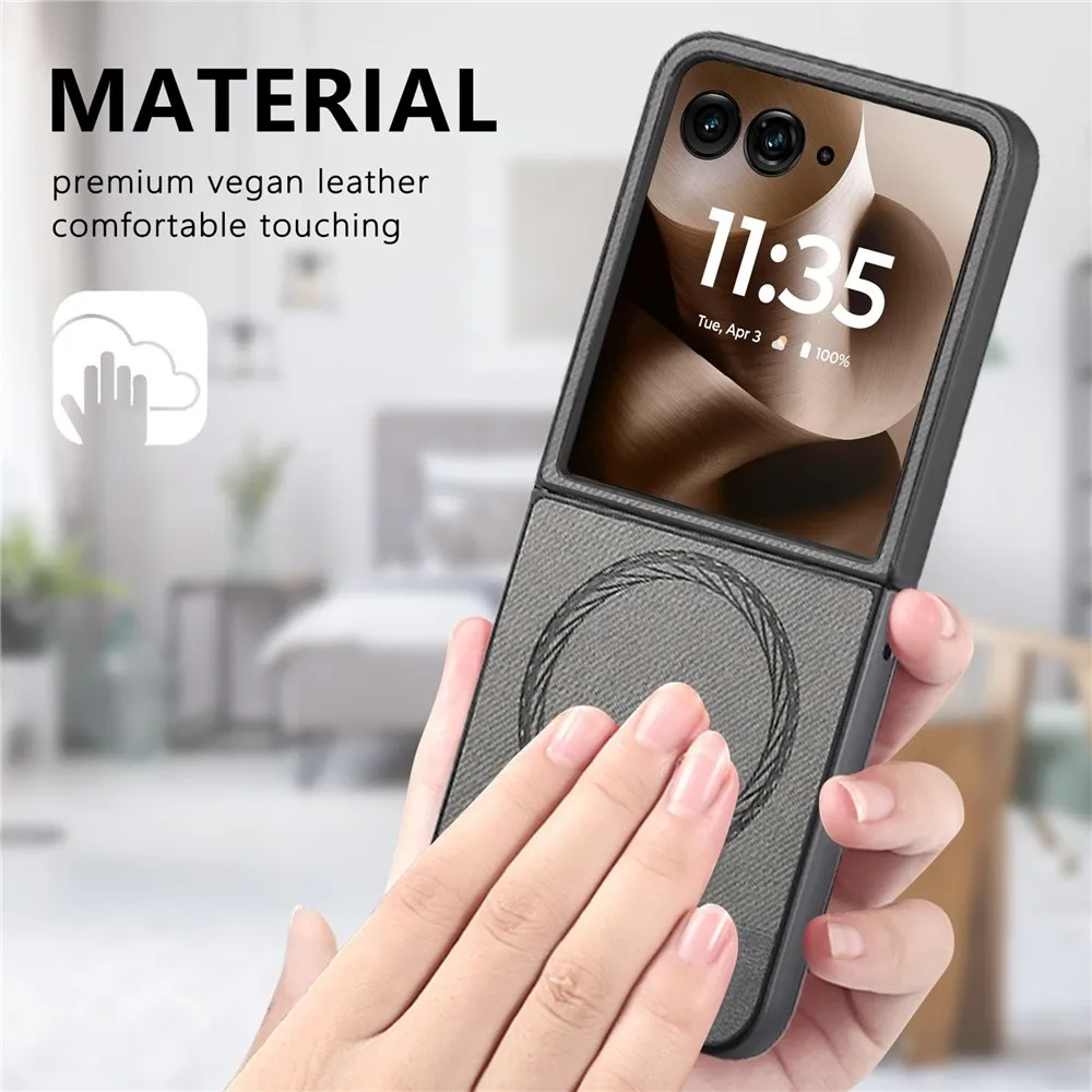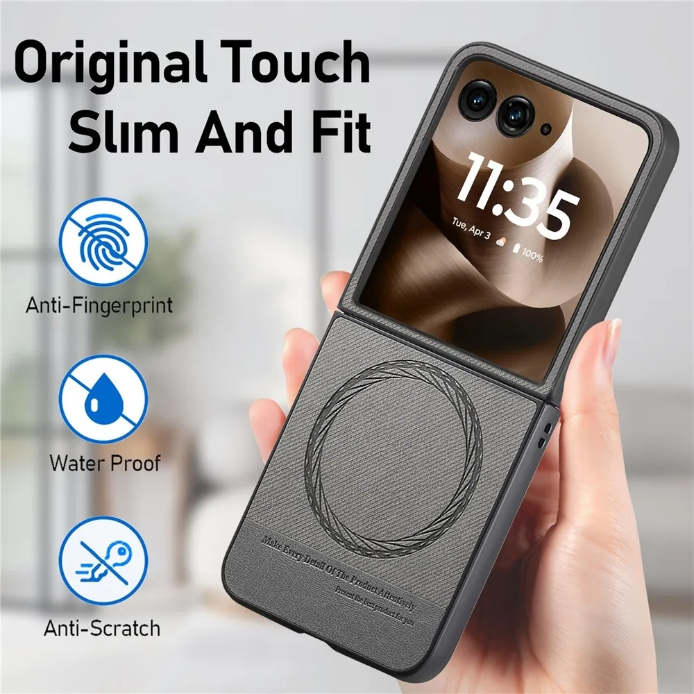 Denim plastový kryt s umelou kožou a MagSafe na Motorola Razr 60 Ultra 5G - šedý