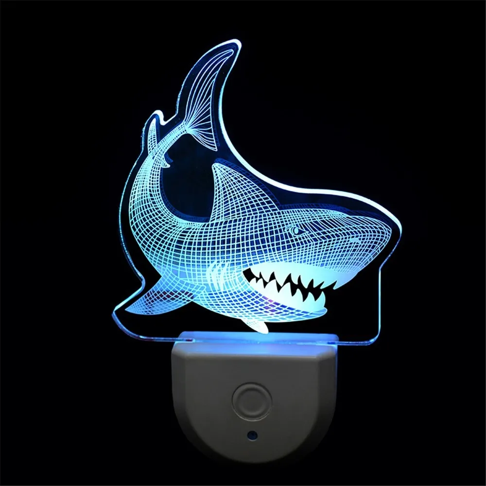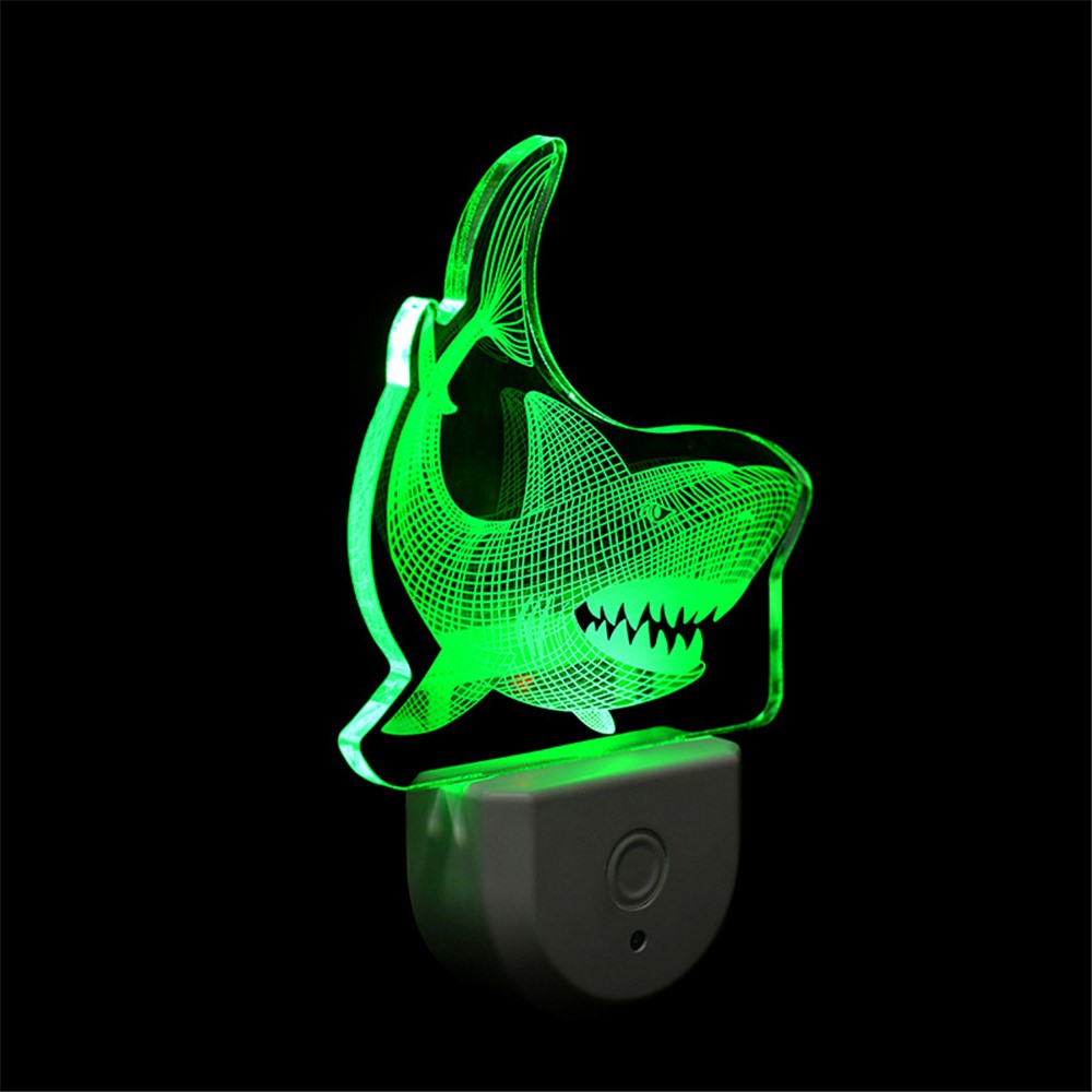 Praktické LED nočné svetlo do zásuvky s hravým motívom žraloka prináša deťom pocit bezpečia počas noci. Vďaka integrovanému svetelnému senzoru sa automaticky zapne pri zotmení a vypne pri dostatku svetla, takže nie je potrebné ručné ovládanie. Úsporný LED zdroj s výkonom 1 W zabezpečuje príjemné jemné osvetlenie s minimálnou spotrebou energie. Inštalácia je veľmi jednoduchá, stačí zapojiť do zásuvky bez potreby použitia batérií.