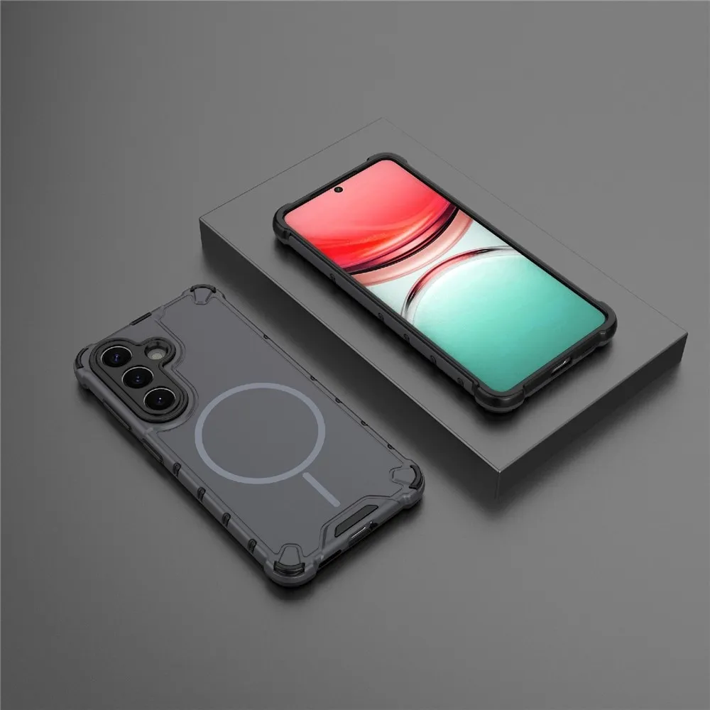 Odolná konštrukcia s vystuženými rohmi poskytuje telefónu Samsung Galaxy S26+ spoľahlivú ochranu pri každodennom používaní aj nečakaných pádoch. Matný povrch v tmavo šedej farbe pôsobí elegantne, dobre sa drží v ruke a obmedzuje kĺzanie. Integrovaný magnetický kruh umožňuje pohodlné využitie magnetického príslušenstva bez nutnosti skladania. Tento obal patrí medzi kryty a púzdra, ktoré kombinujú funkčnosť, pevnosť a moderný dizajn.