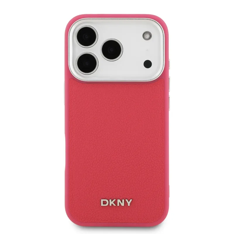DKNY PU kožený kovový kryt s logom na zápästie MagSafe zadný kryt pre iPhone 17 Pro Pink