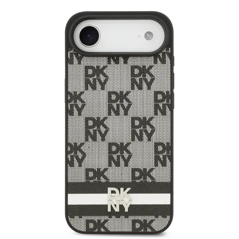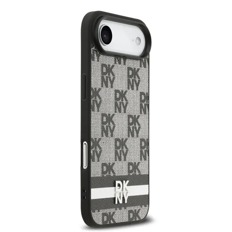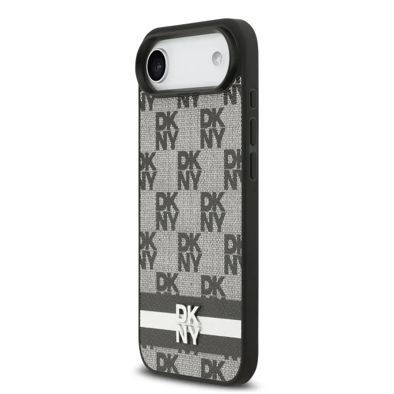 DKNY PU kožený zadný kryt s károvaným vzorom a pruhmi pre iPhone Air Black