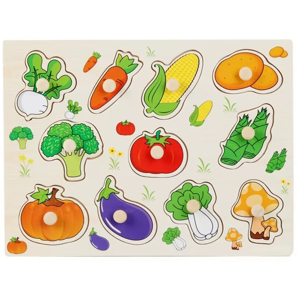 Táto detská hračka s obrázkami zeleniny je drevená edukačná hračka určená na rané vzdelávanie a rozvoj kognitívnych schopností. Obsahuje rôzne tvary zeleniny. Je vyrobená z kvalitného dreva, je bezpečná, odolná a má rozmery 22,5 × 30 cm. Vhodná pre deti od 0 do 4 rokov, podporuje kognitívny vývoj prostredníctvom interaktívnej hry.