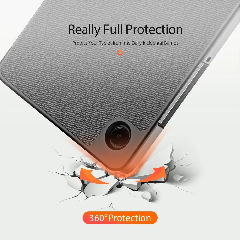 Praktický a elegantný zatvárateľný obal DUX na tablet Samsung Galaxy Tab A11/Tab A9 v čiernom prevedení je ideálnym riešením pre ochranu aj pohodlné používanie vášho zariadenia. Kryt je vyrobený z odolného materiálu, ktorý zaisťuje účinnú ochranu proti poškriabaniu, nárazom aj bežnému opotrebovaniu. Predná časť je rozdelená do troch segmentov, čo umožňuje jednoduché zloženie do praktického stojanu na sledovanie videí alebo prácu. Vnútorná strana krytu pevne drží tablet na mieste bez toho, aby obmedzovala prístup k ovládacím prvkom. Toto štýlové púzdro DUX na tablet skvele kombinuje funkčnosť, bezpečie a moderný vzhľad.